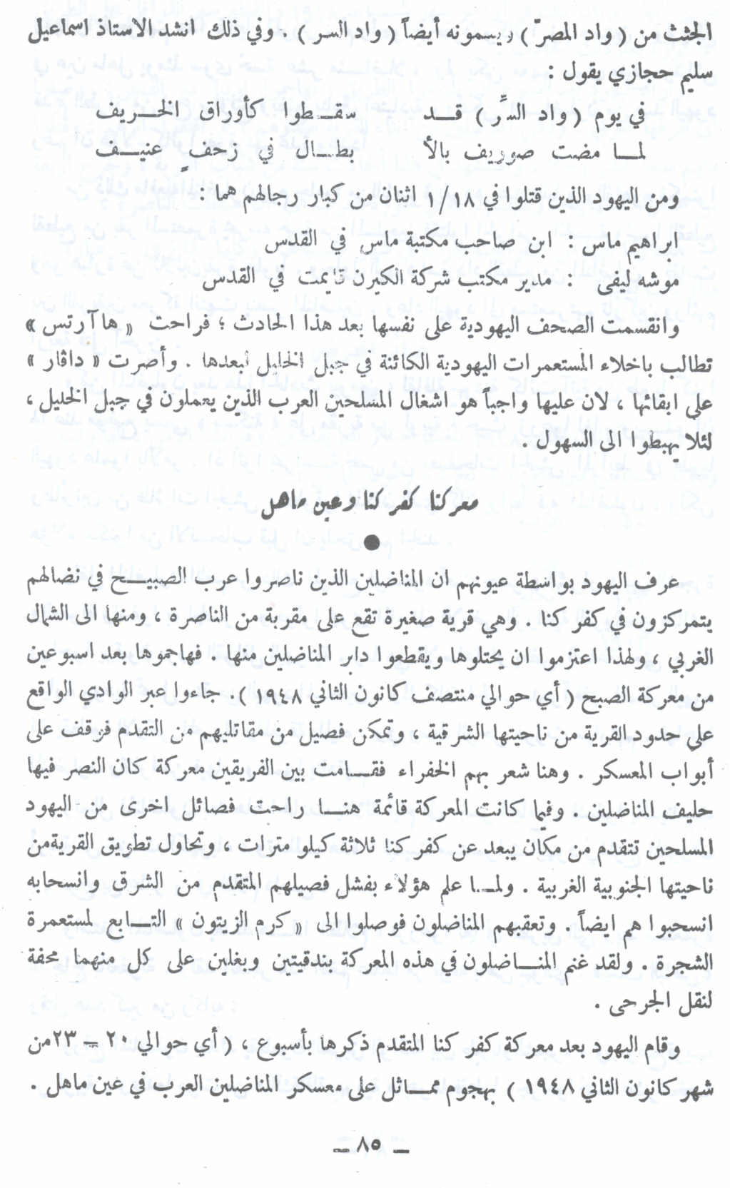 معركة كفر كنا وعين ماهل - 15 كانون ثاني 1947 - النكبة الفلسطينية والفردوس المفقود للأستاذ عارف العارف |