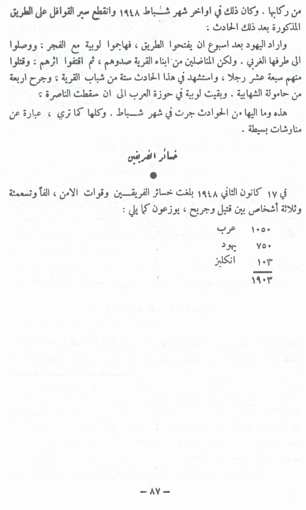 خسائر الفريقين حتى 17 كانون الثاني 1948 - النكبة الفلسطينية والفردوس المفقود للأستاذ عارف العارف |