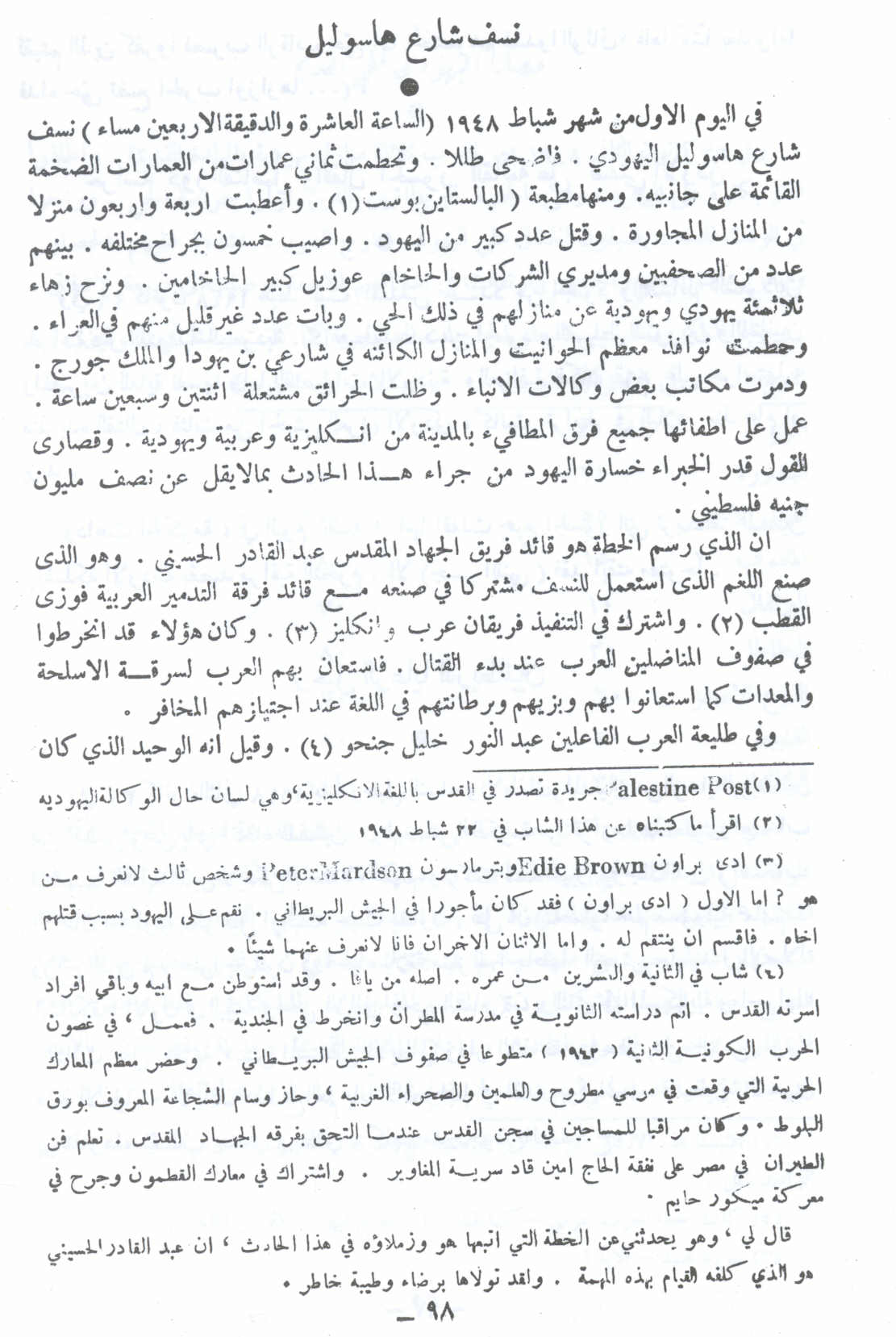نسف شارع هاسوليل - 1 شباط 1948 - النكبة الفلسطينية والفردوس المفقود للأستاذ عارف العارف |