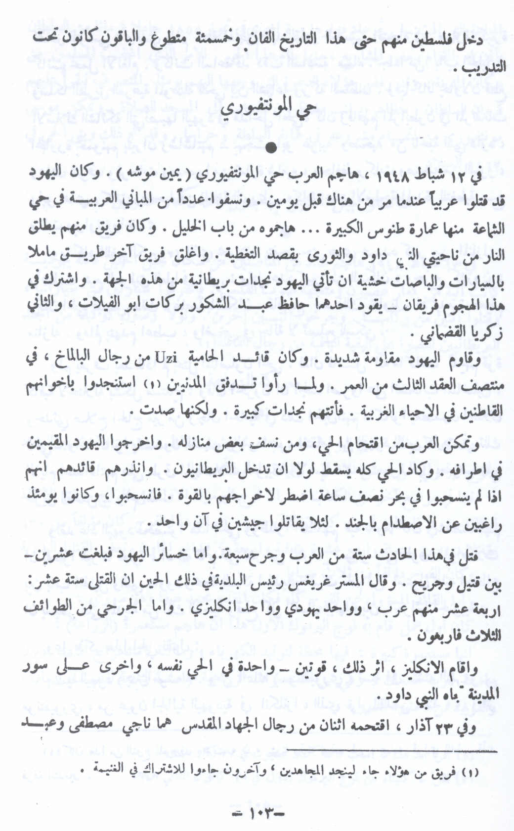 حي المونتفيوري (يمين موشيه) - 12 شباط 1948 - النكبة الفلسطينية والفردوس المفقود للأستاذ عارف العارف |