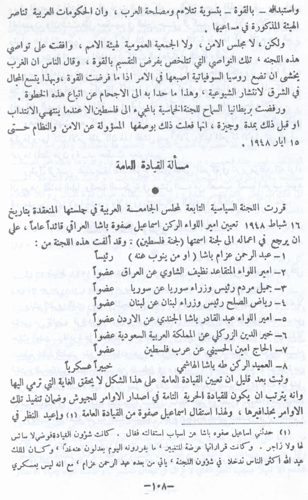 مسألة القيادة العامة - 16 شباط 1948 - النكبة الفلسطينية والفردوس المفقود للأستاذ عارف العارف |