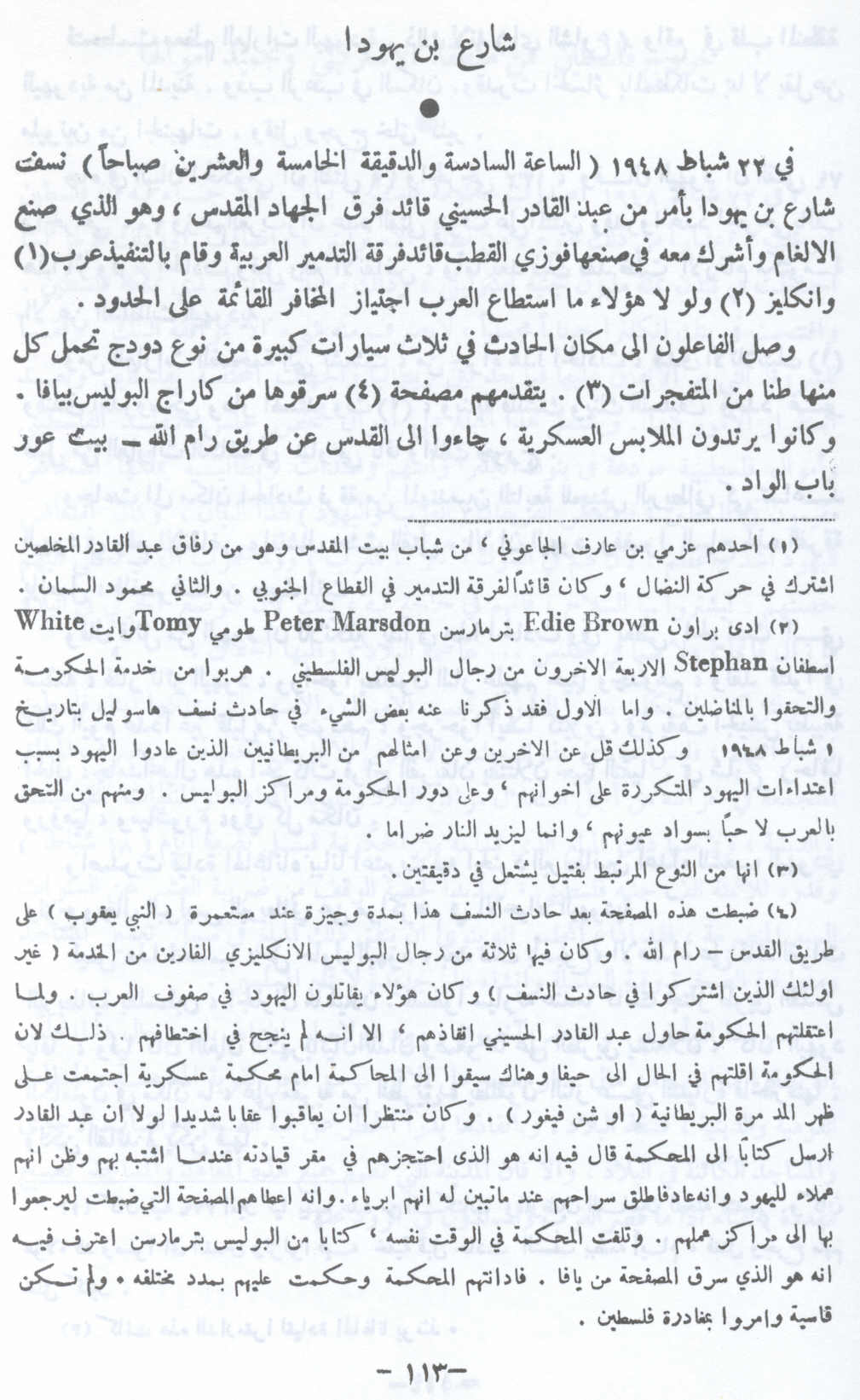 نسف شارع بن يهودا - 22 شباط 1948 - النكبة الفلسطينية والفردوس المفقود للأستاذ عارف العارف