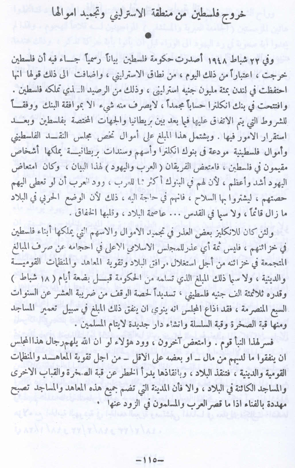 خروج فلسطين من منطقة الإسترليني وتجميد أموالها - 22 شباط 1948 - النكبة الفلسطينية والفردوس المفقود للأستاذ عارف العارف |