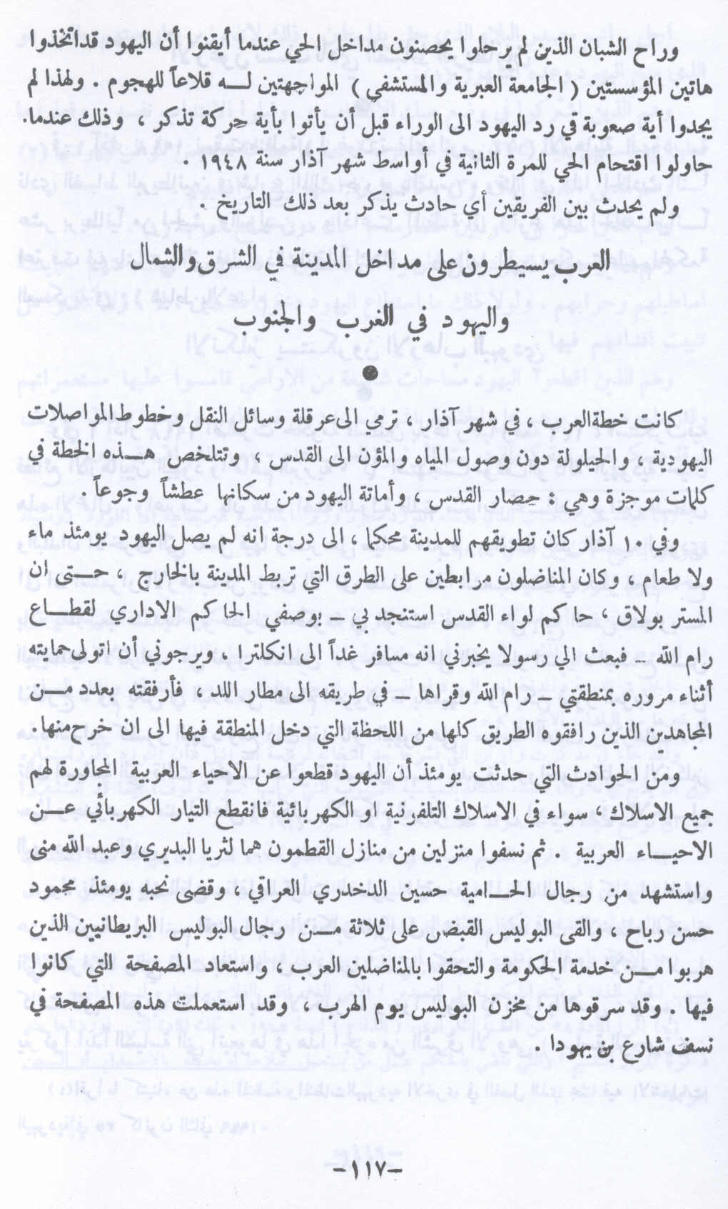 العرب يسيطرون على مداخل المدينة في الشرق والشمال واليهود في الغرب والجنوب - آذار 1948 - النكبة الفلسطينية والفردوس المفقود للأستاذ عارف العارف |