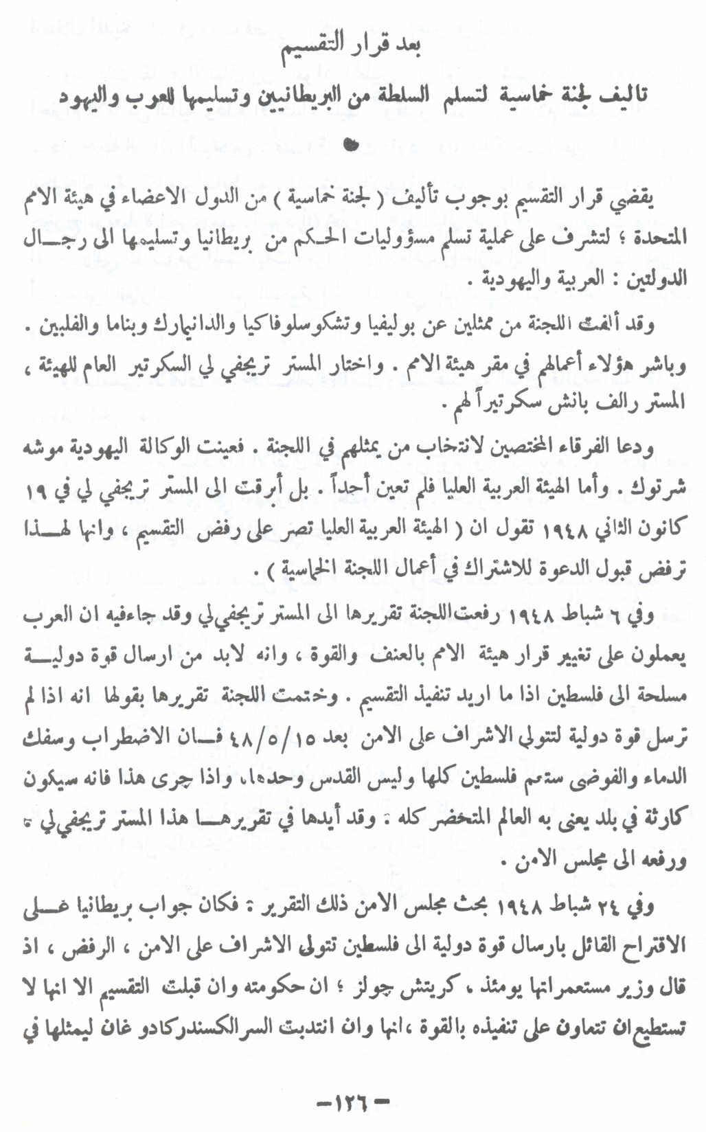 بعد قرار التقسيم : تأليف لجنة خماسية لتسلم السلطة من البريطانيين وتسليمها للعرب واليهود - النكبة الفلسطينية والفردوس المفقود للأستاذ عارف العارف |
