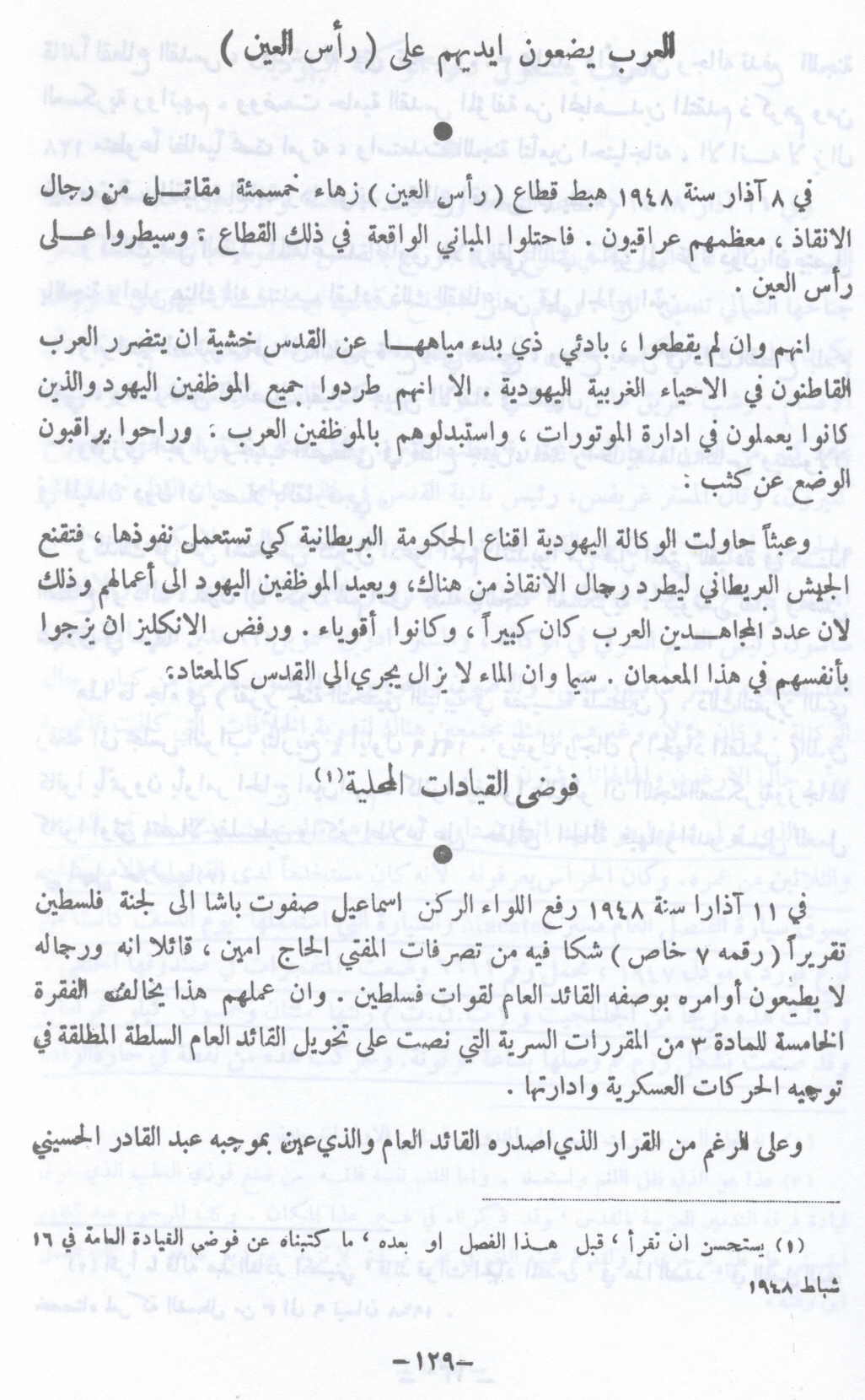 العرب يضعون أيديهم على رأس العين - 8 آذار 1948 -- النكبة الفلسطينية والفردوس المفقود للأستاذ عارف العارف |