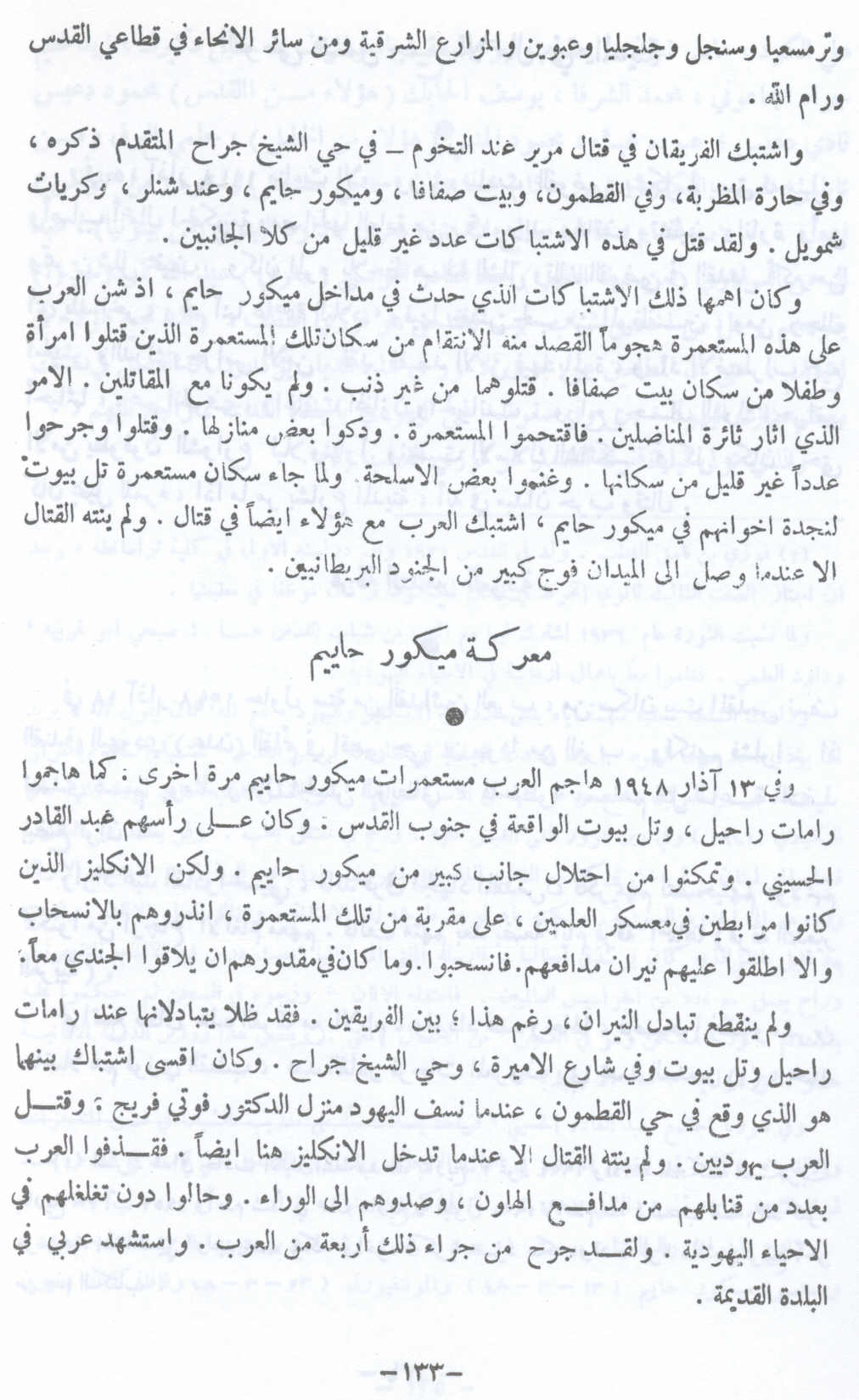 معركة ميكور حاييم - 13 آذار 1948 -- النكبة الفلسطينية والفردوس المفقود للأستاذ عارف العارف |