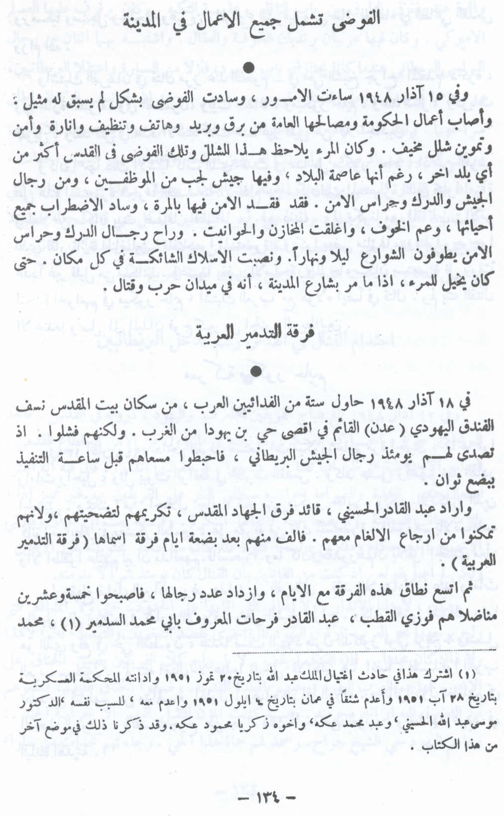 الفوضى تشمل جميع الأعمال في المدينة -فرقة التدمير العربية - 15 آذار 1948 -- النكبة الفلسطينية والفردوس المفقود للأستاذ عارف العارف |