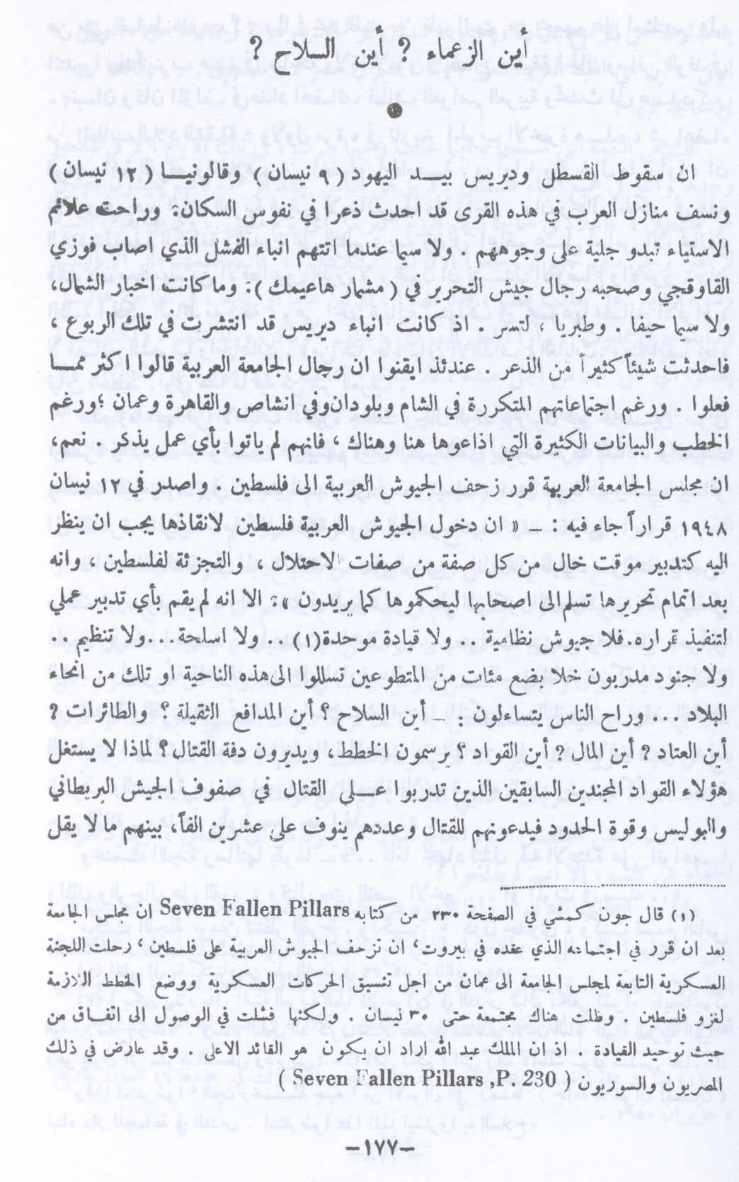أين الزعماء؟ أين الأسلحة؟ - النكبة الفلسطينية والفردوس المفقود للأستاذ عارف العارف |