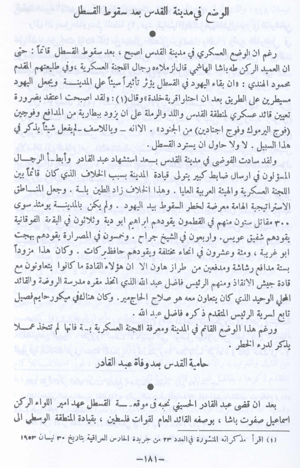 الوضع في القدس بعد سقوط القسطل - النكبة الفلسطينية والفردوس المفقود للأستاذ عارف العارف |