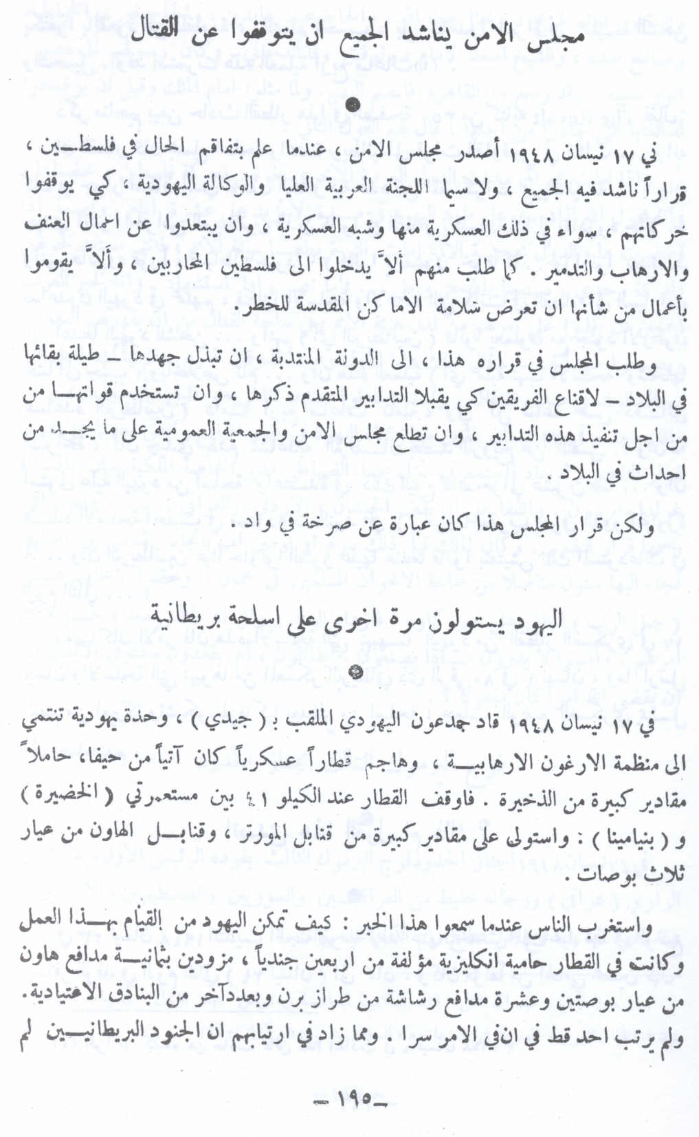 مجلس الأمن يناشد الجميع أن يتوقفوا عن القتال - 17 نيسان 1948 --- النكبة الفلسطينية والفردوس المفقود للأستاذ عارف العارف |