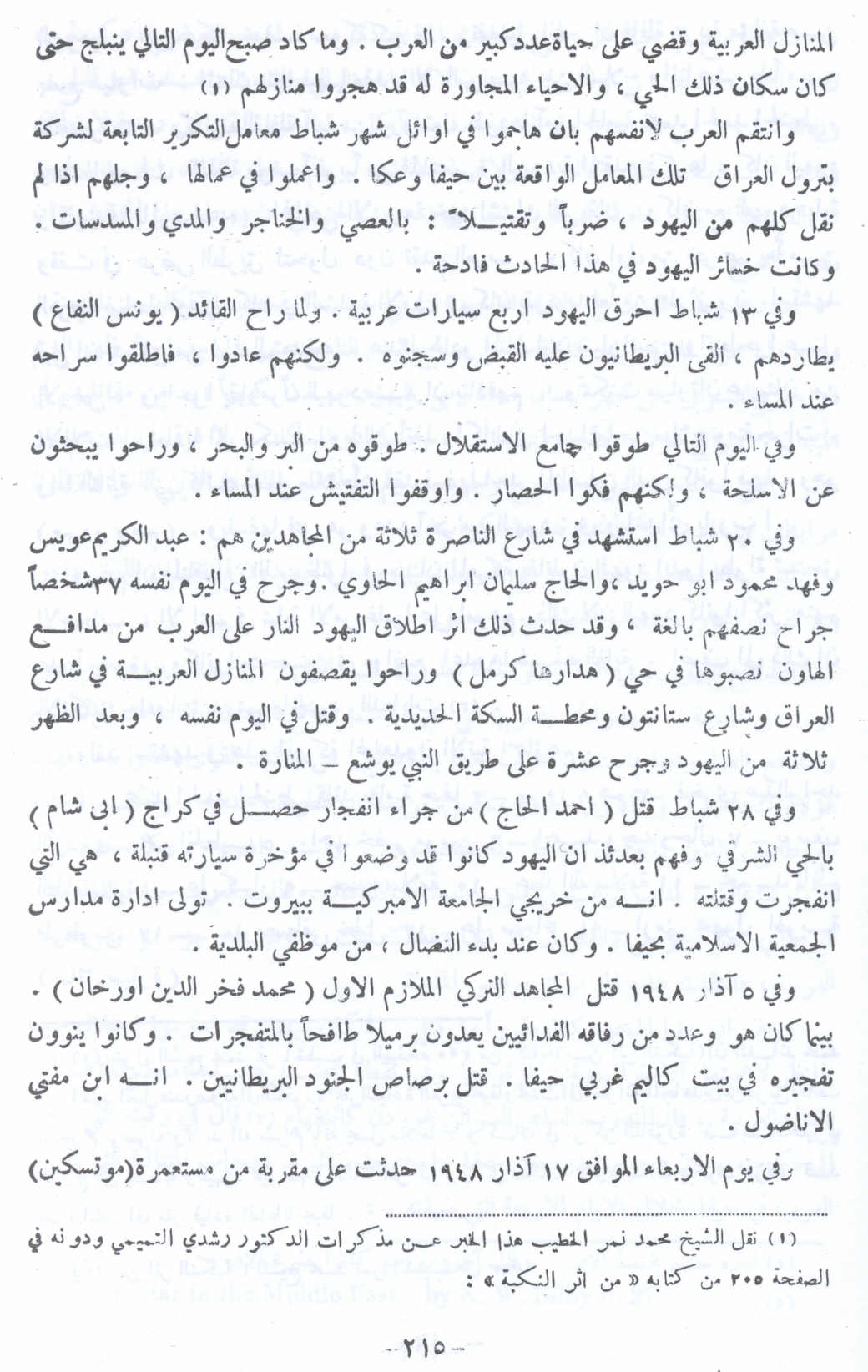 النكبة الفلسطينية والفردوس المفقود للأستاذ عارف العارف - المجلد الأول - صفحة 215 |