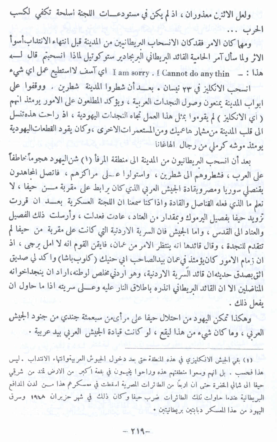 النكبة الفلسطينية والفردوس المفقود للأستاذ عارف العارف - المجلد الأول - صفحة 219 |