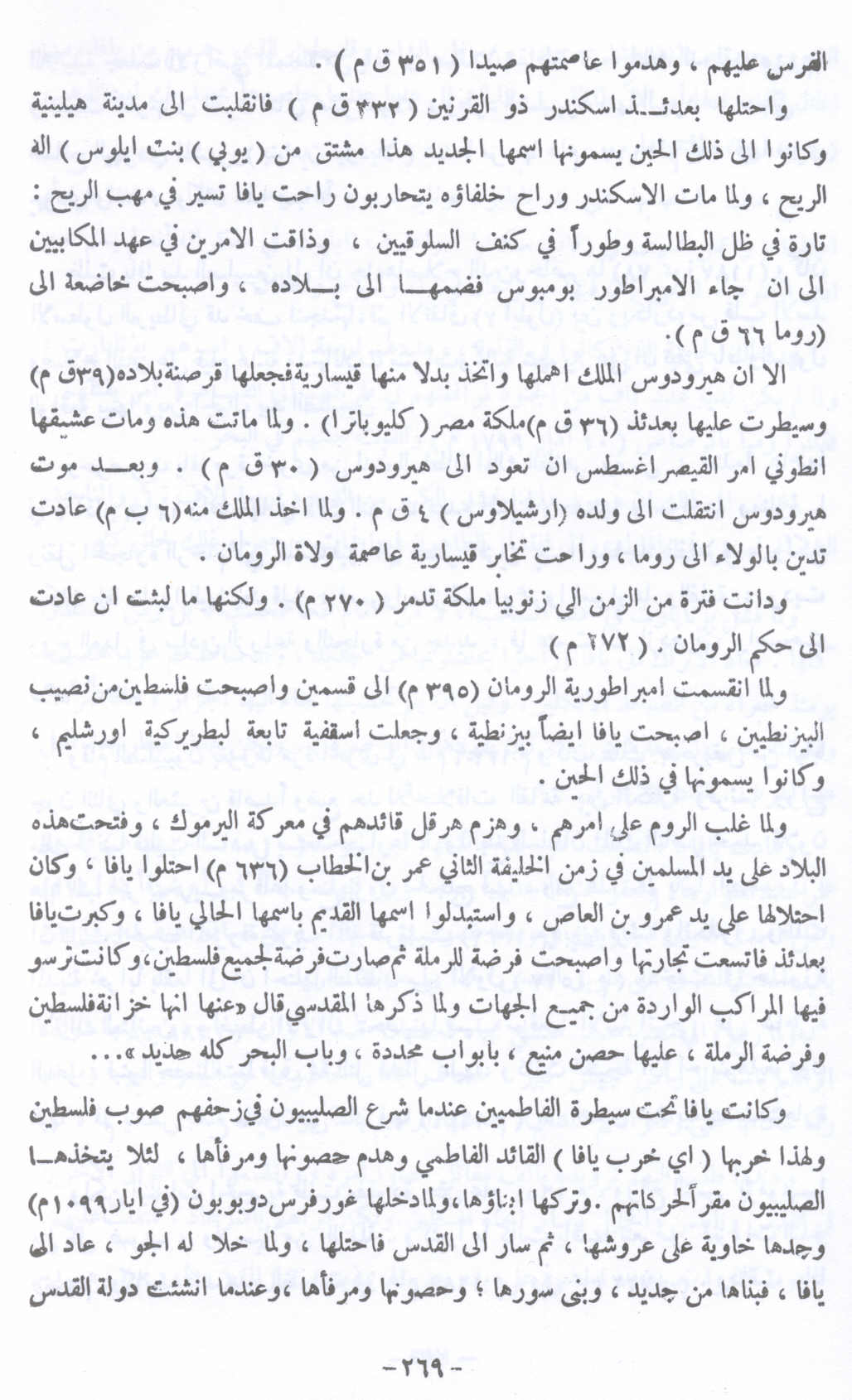 النكبة الفلسطينية والفردوس المفقود للأستاذ عارف العارف - المجلد الأول - صفحة 269 |