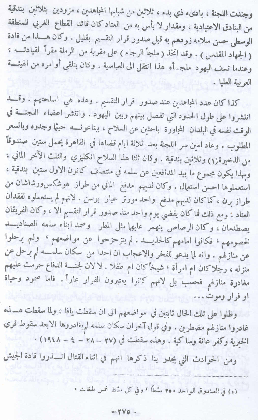 النكبة الفلسطينية والفردوس المفقود للأستاذ عارف العارف - المجلد الأول - صفحة 275 |