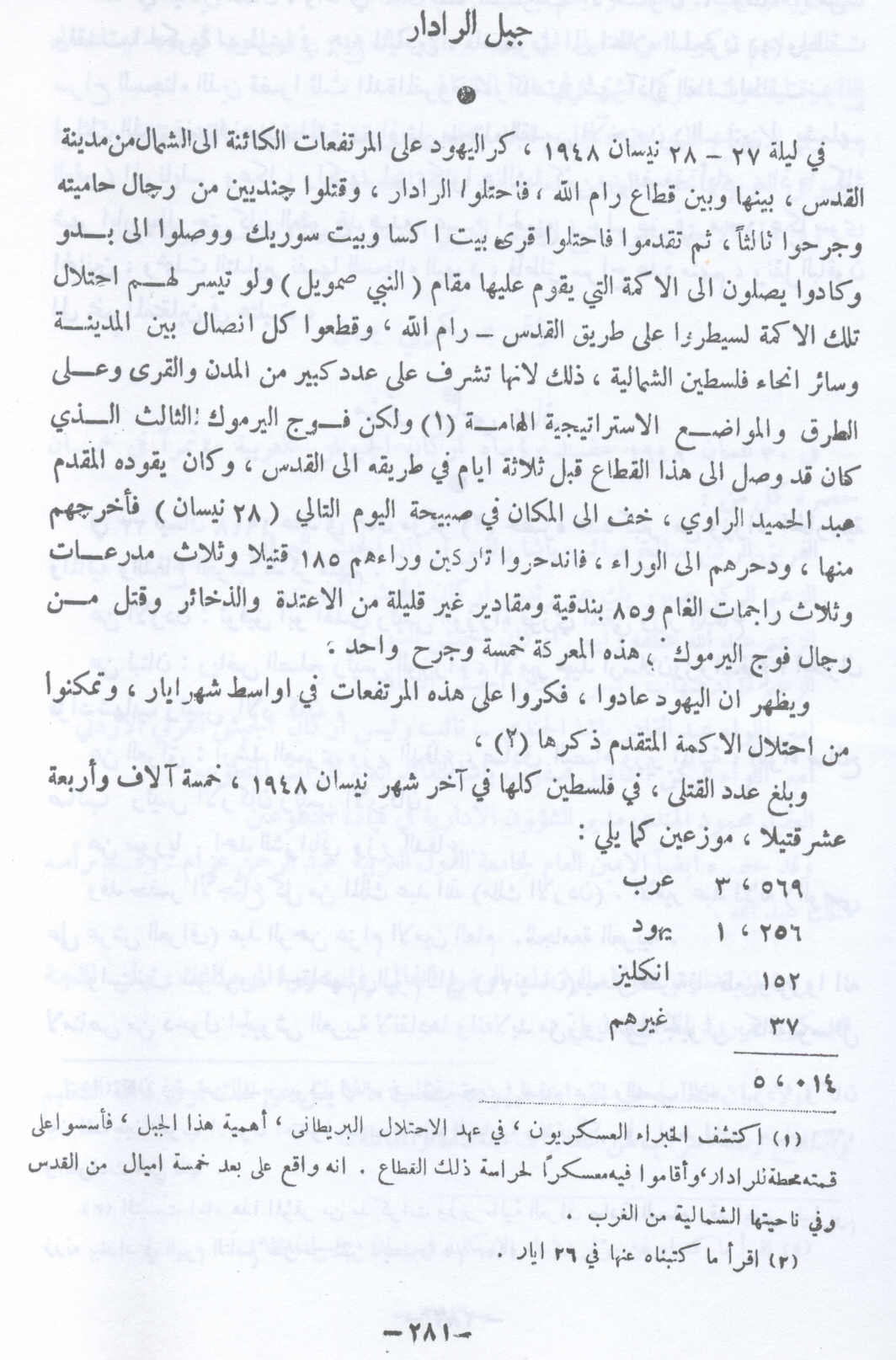 معارك جبل الرادار - 27 نيسان 1948 -- النكبة الفلسطينية والفردوس المفقود للأستاذ عارف العارف |