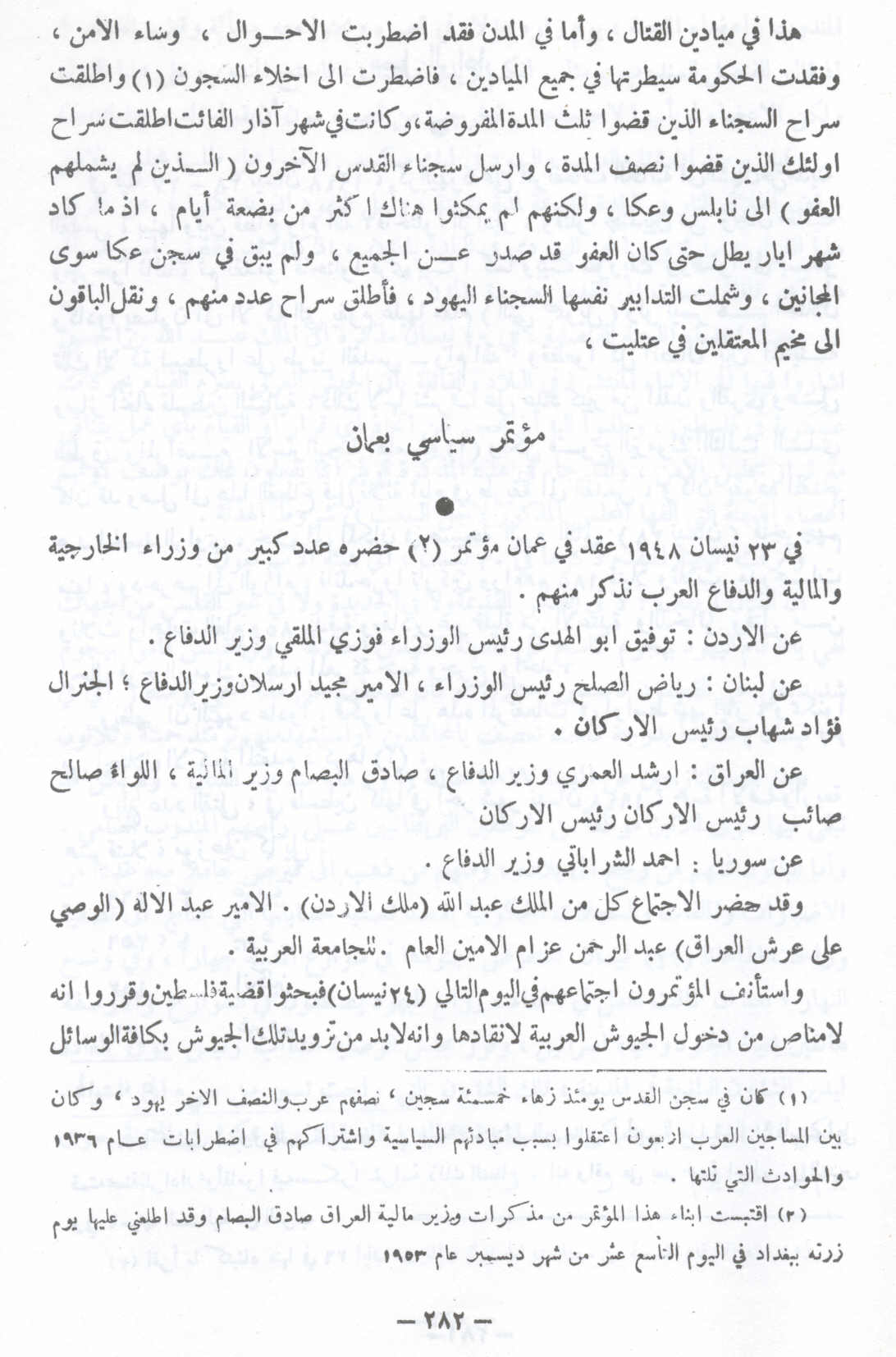 مؤتمر سياسي بعمان - 23 نيسان 1948-- النكبة الفلسطينية والفردوس المفقود للأستاذ عارف العارف |