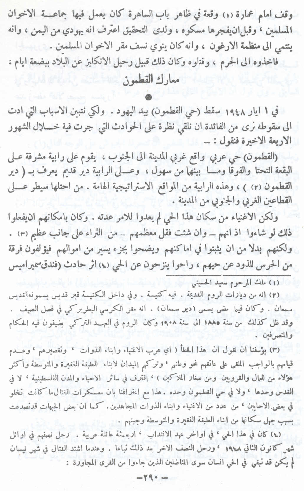 معارك حي القطمون - القدس - 1 أيار 1948 -- النكبة الفلسطينية والفردوس المفقود للأستاذ عارف العارف |
