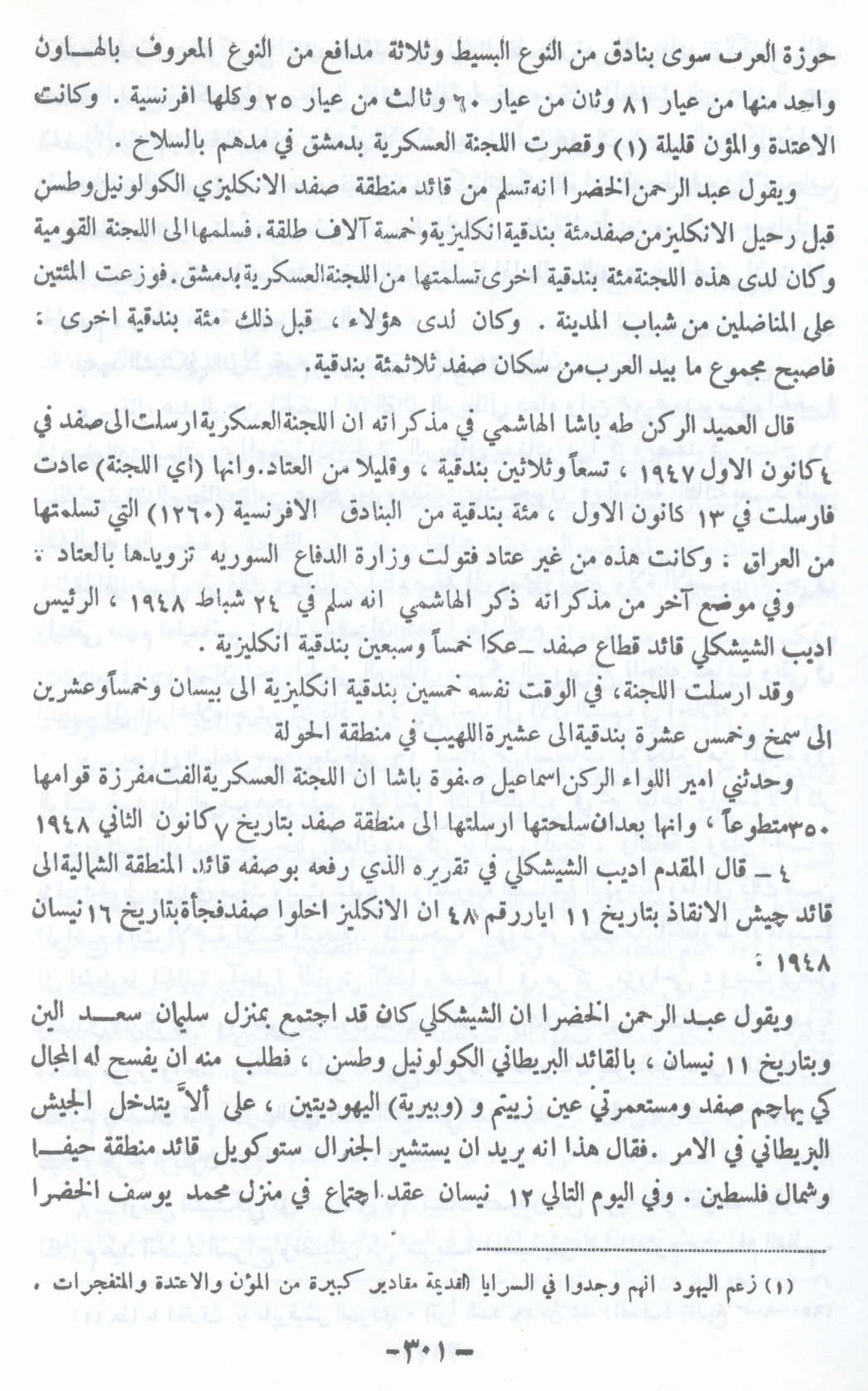 النكبة الفلسطينية والفردوس المفقود للأستاذ عارف العارف - المجلد الأول - صفحة 301 |