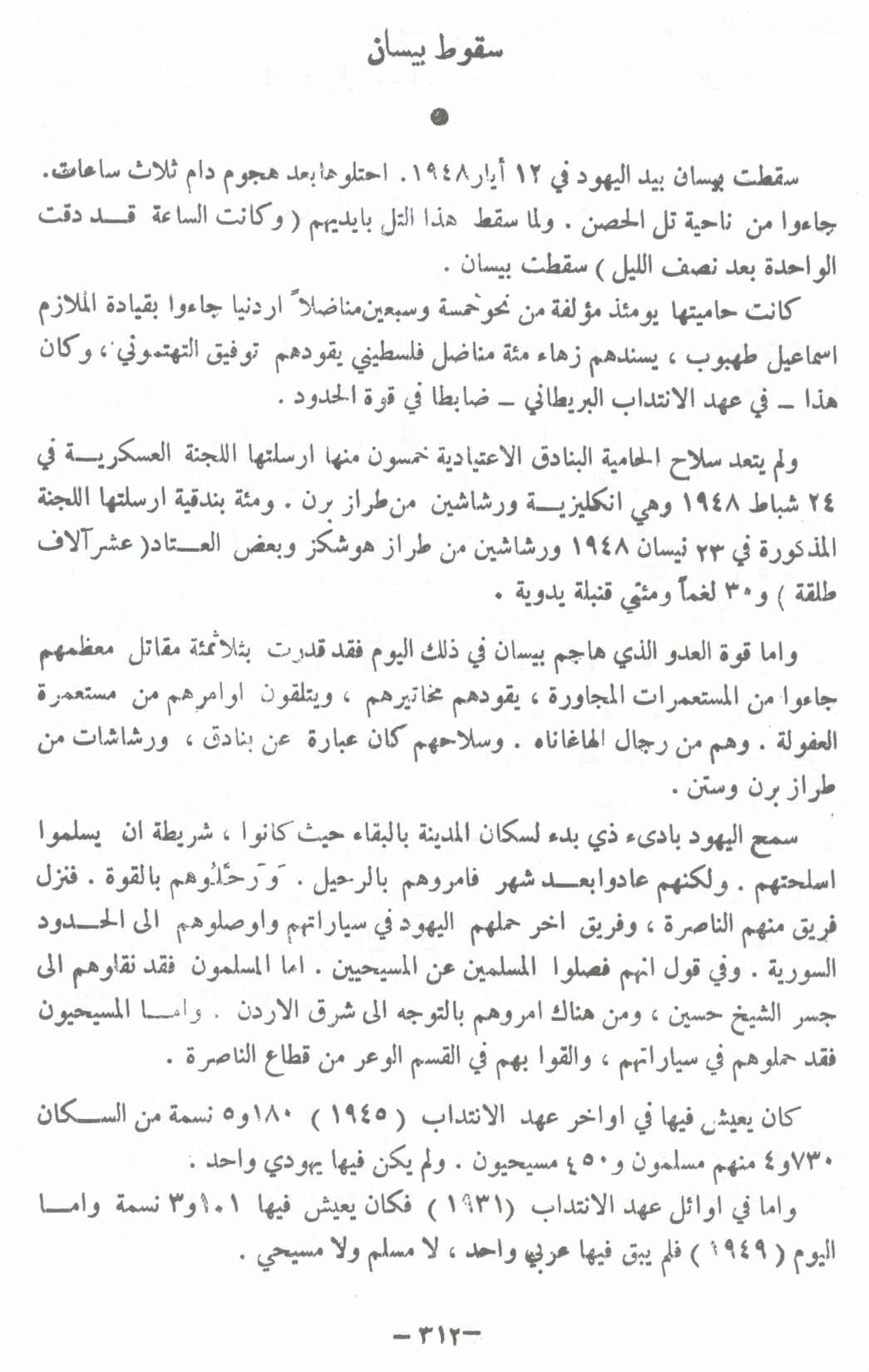 سقوط بيسان - 12 أيار 1948 -- النكبة الفلسطينية والفردوس المفقود للأستاذ عارف العارف |