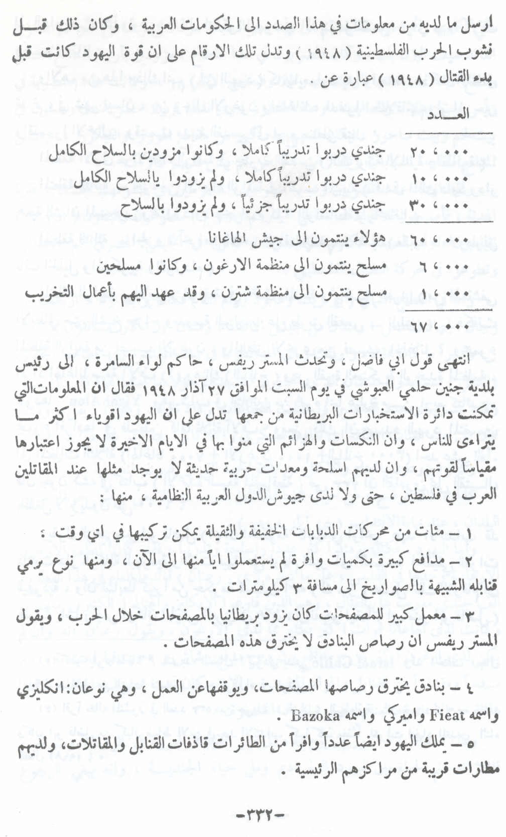 تعداد القوات اليهودية في فلسطين قبل إعلان قرارالتقسيم -- النكبة الفلسطينية والفردوس المفقود للأستاذ عارف العارف |