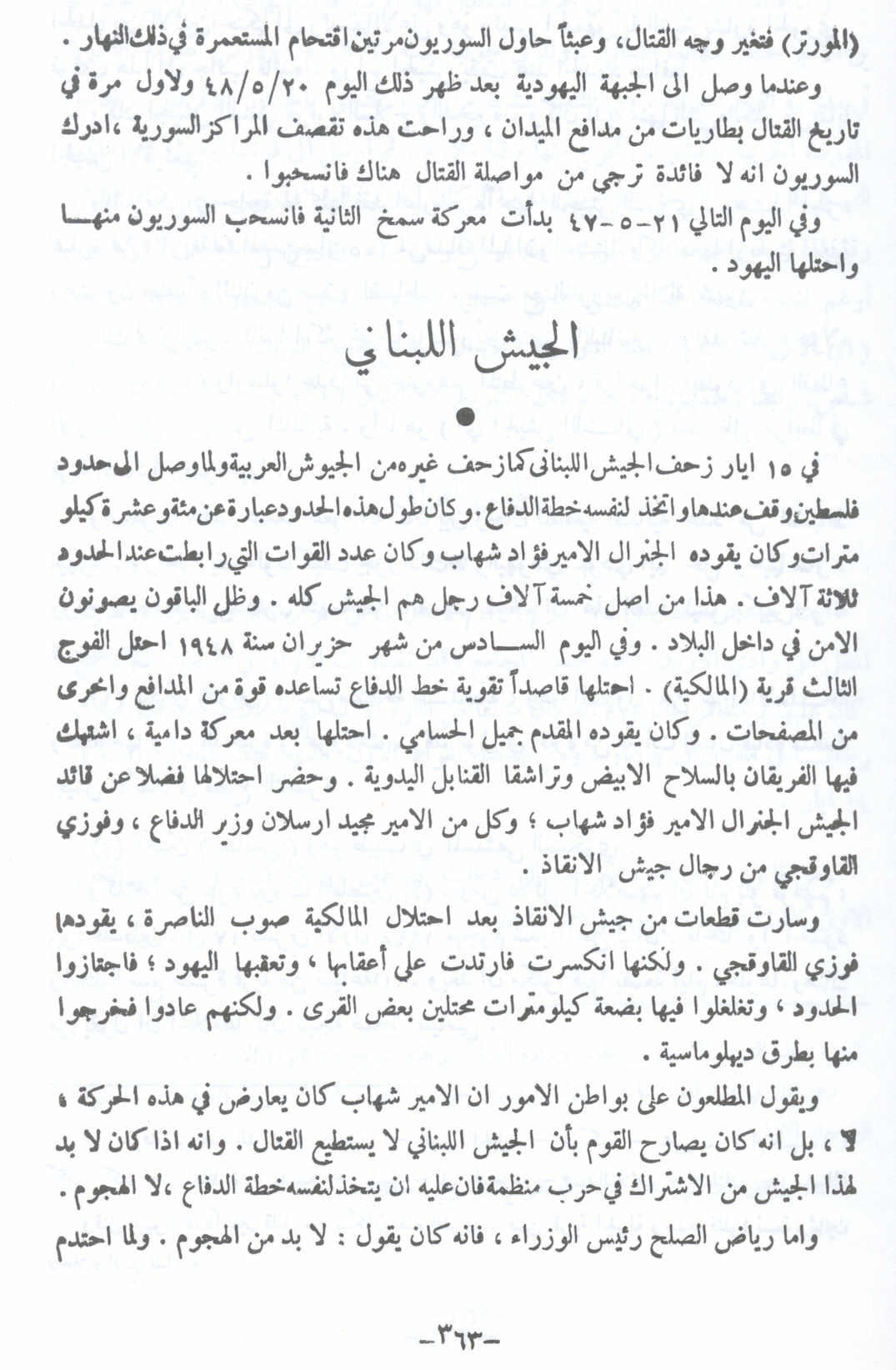 الجيش اللبناني -- الجيش العراقي - 15 أيار 1948 -- النكبة الفلسطينية والفردوس المفقود للأستاذ عارف العارف |