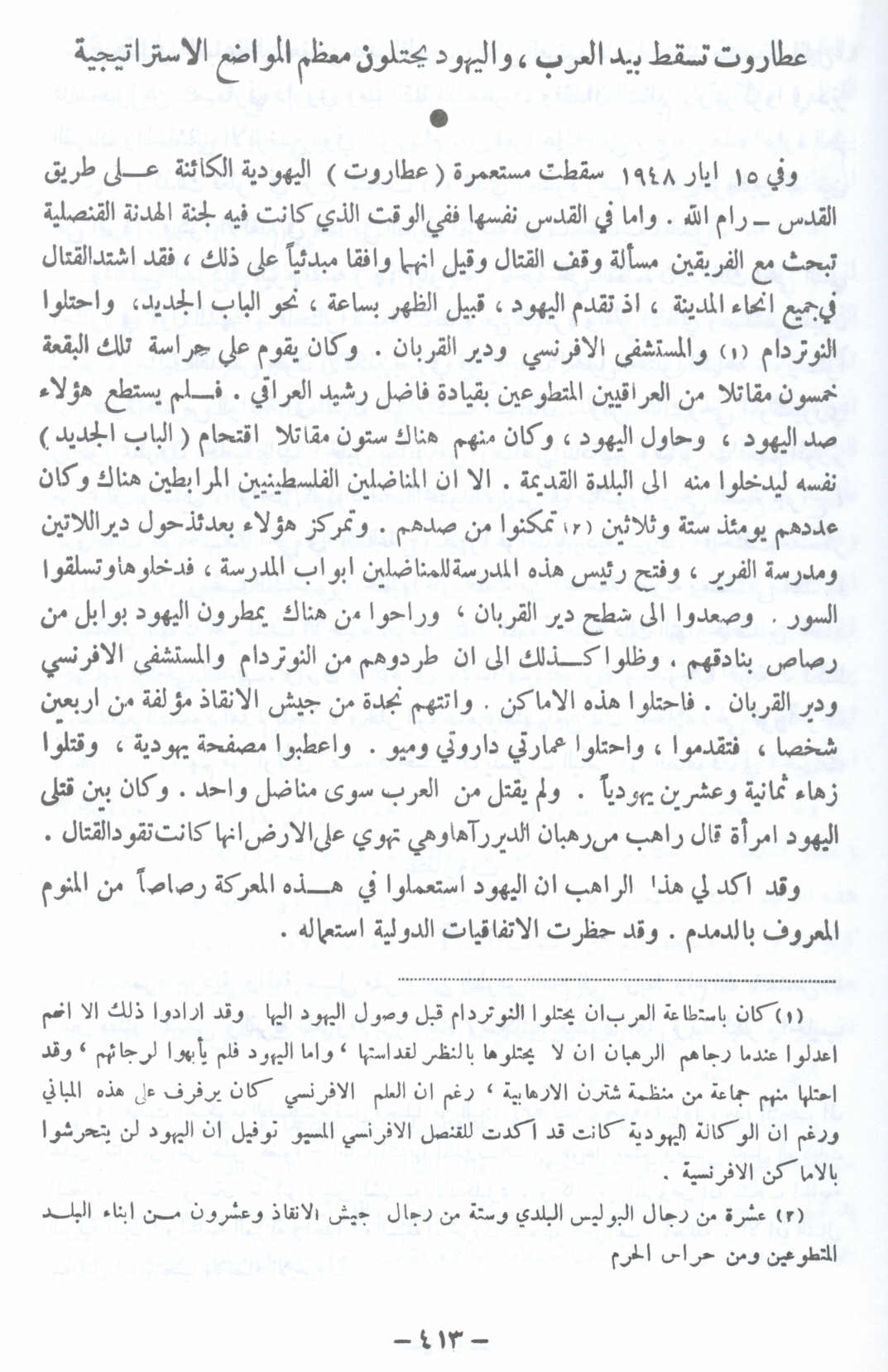 سقوط مستعمرة عطاروت بيد العرب، واليهود يحتلون معظم المواضع الإسترتيجية - 15 أيار 1948 -- النكبة الفلسطينية والفردوس المفقود للأستاذ عارف العارف |