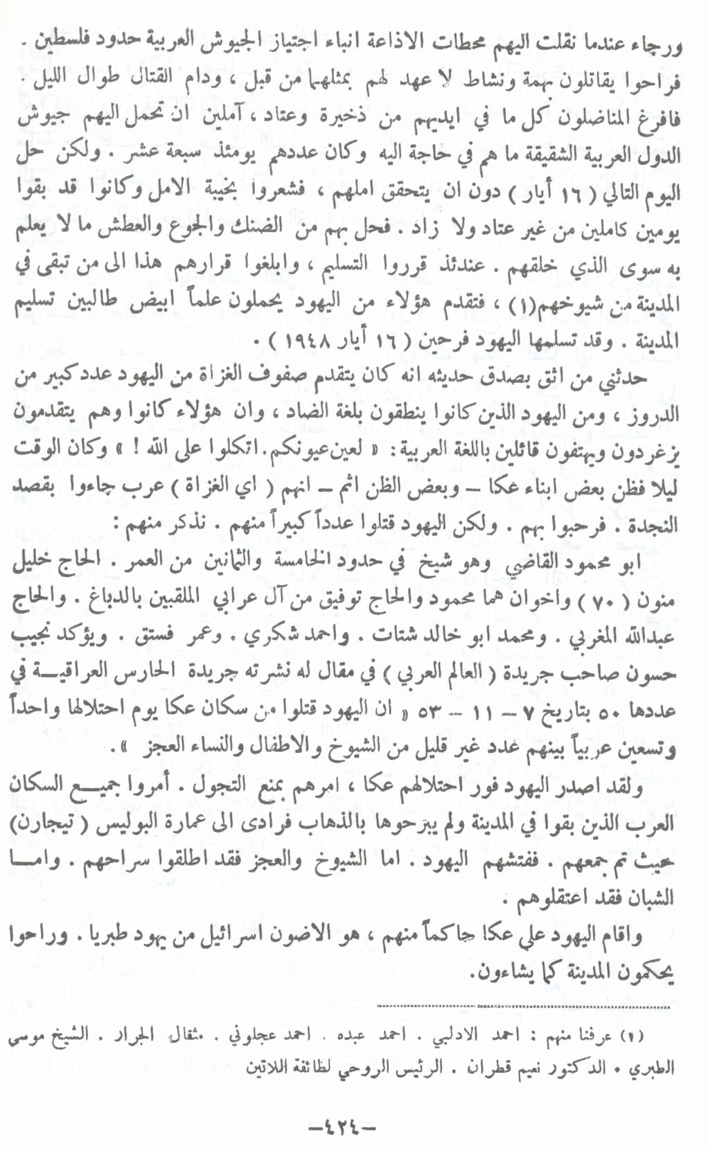 النكبة الفلسطينية والفردوس المفقود للأستاذ عارف العارف - المجلد الثاني - صفحة 424 |