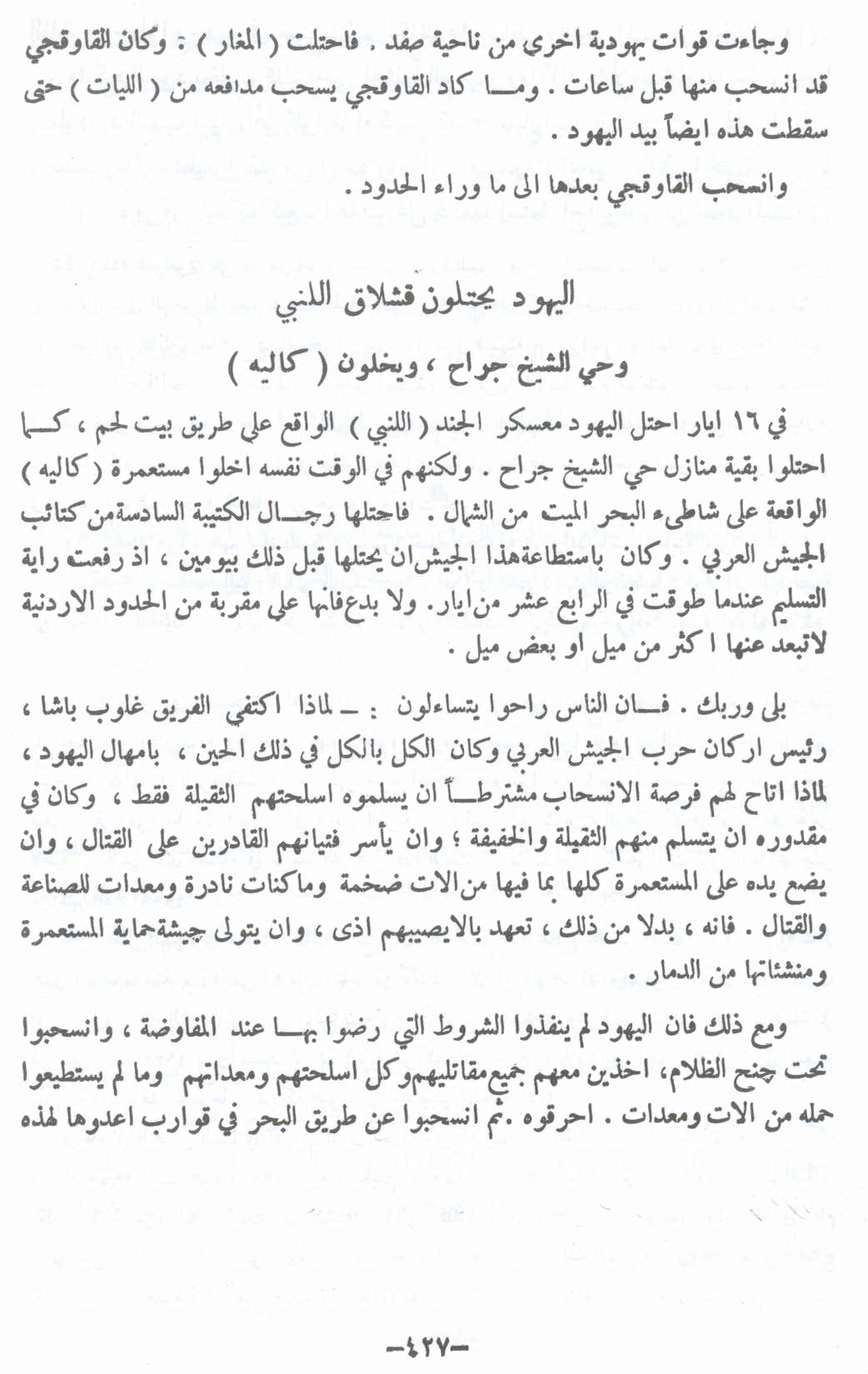 اليهود يحتلون قشلاق اللنبي وحي الشيخ جراح ويخلون (كاليه) (أسفل الصفحة) - 16 أيار 1948 -- النكبة الفلسطينية والفردوس المفقود للأستاذ عارف العارف |
