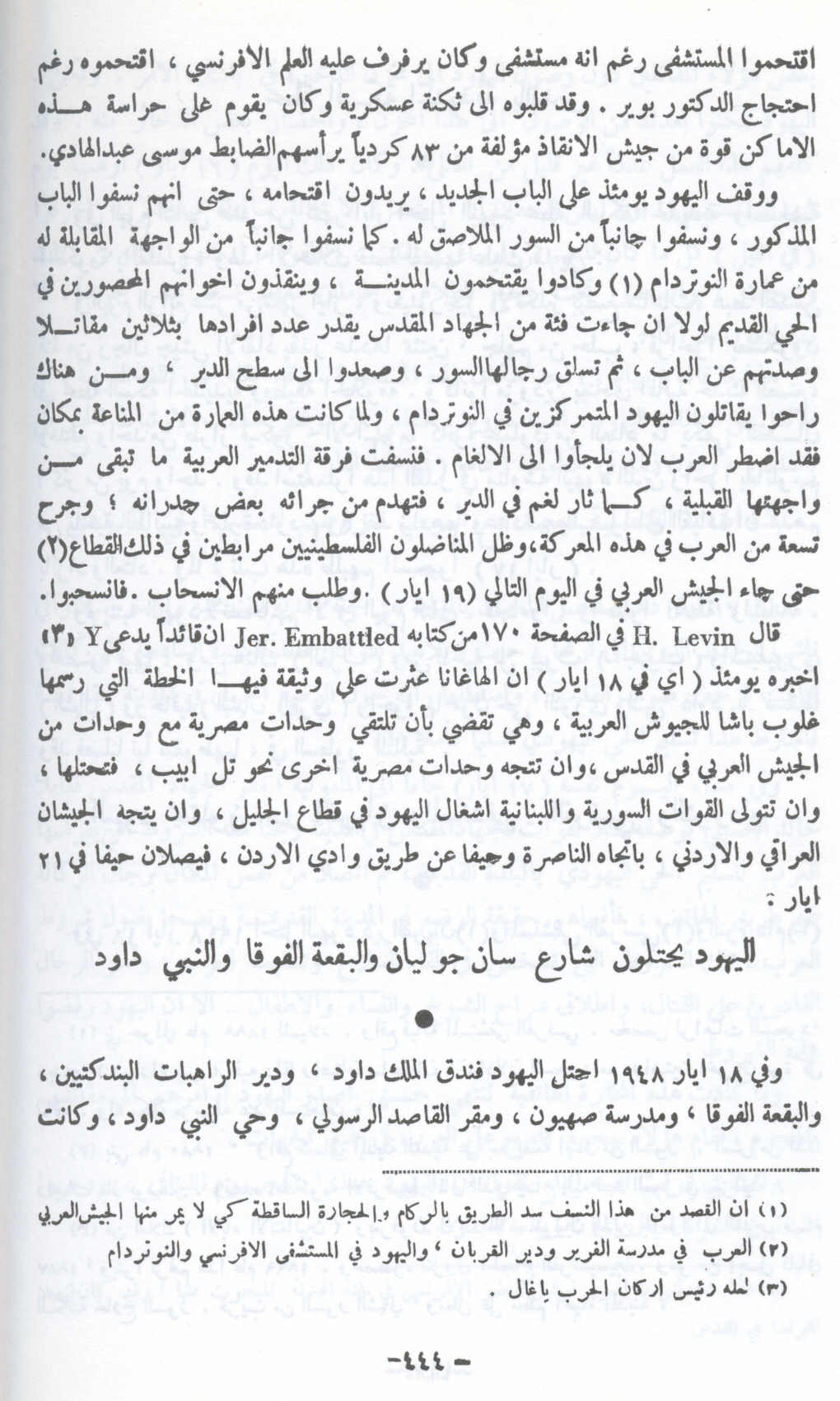 اليهود يحتلون شارع سان جوليان والبقعة الفوقا والنبي دواد (أسفل الصفحة) - 18 أيار 1948 -- النكبة الفلسطينية والفردوس المفقود للأستاذ عارف العارف |