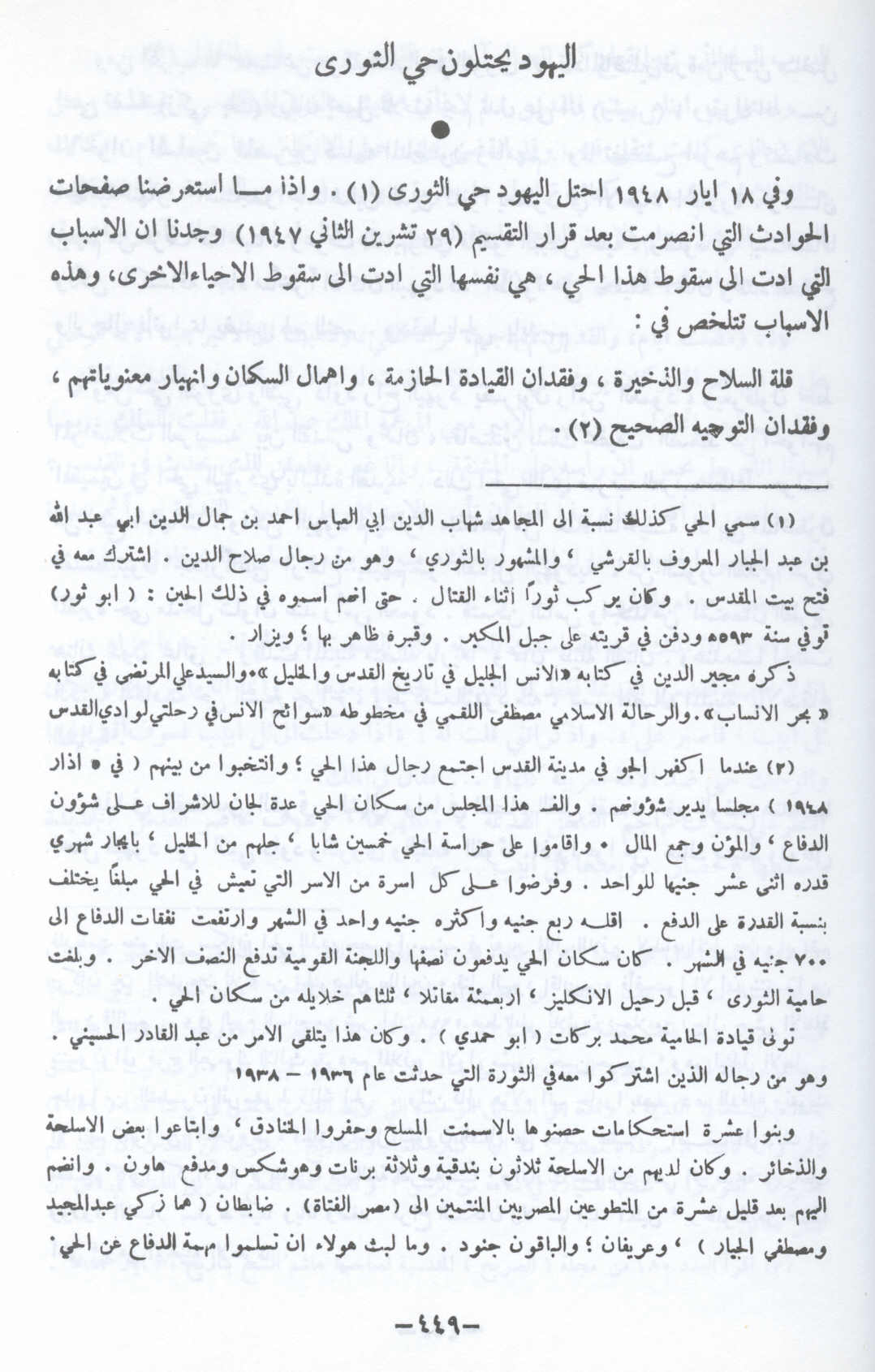 اليهود يحتلون حي الثوري - 18 أيار 1948 -- النكبة الفلسطينية والفردوس المفقود للأستاذ عارف العارف |