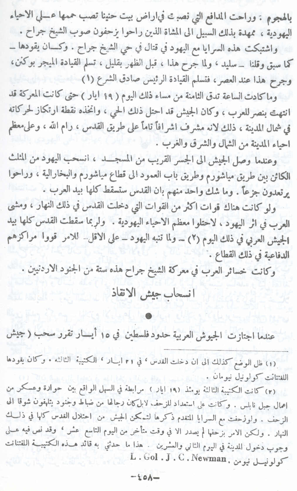 إنسحاب جيش الإنقاذ (إنتقادات للقيادة القاوقجي أيضاً) - 20 أيار 1948 -- النكبة الفلسطينية والفردوس المفقود للأستاذ عارف العارف |