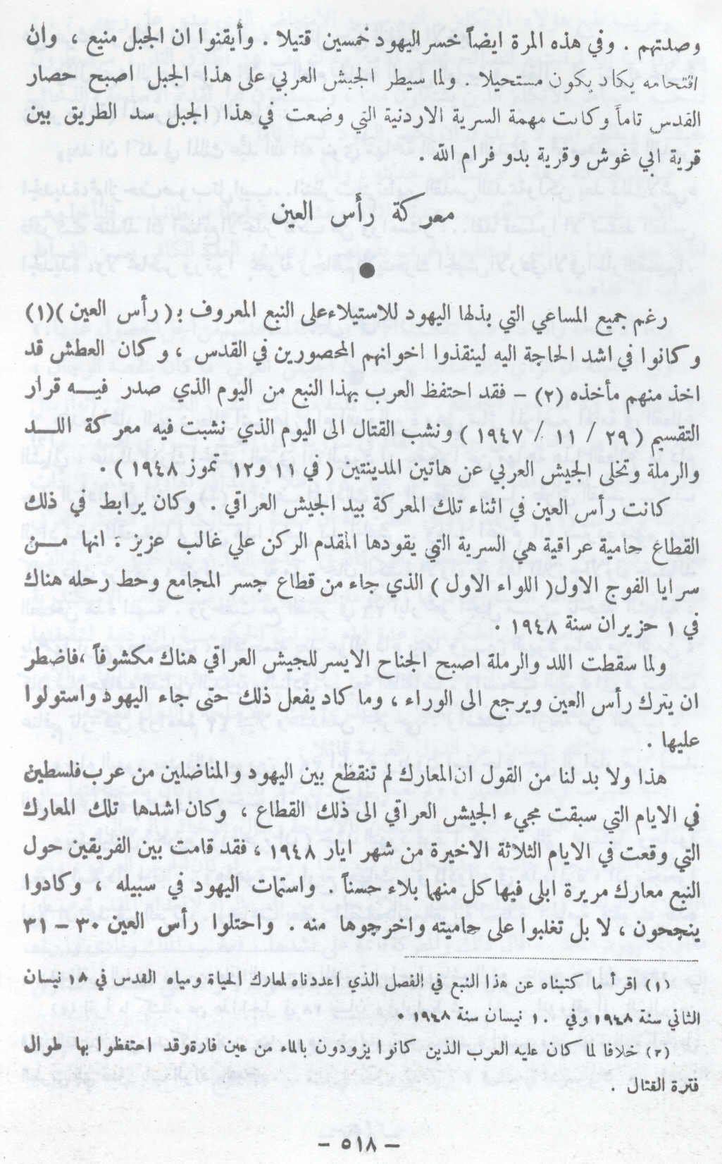 معركة رأس العين - 29 - 31 أيار 1948 -- النكبة الفلسطينية والفردوس المفقود للأستاذ عارف العارف |