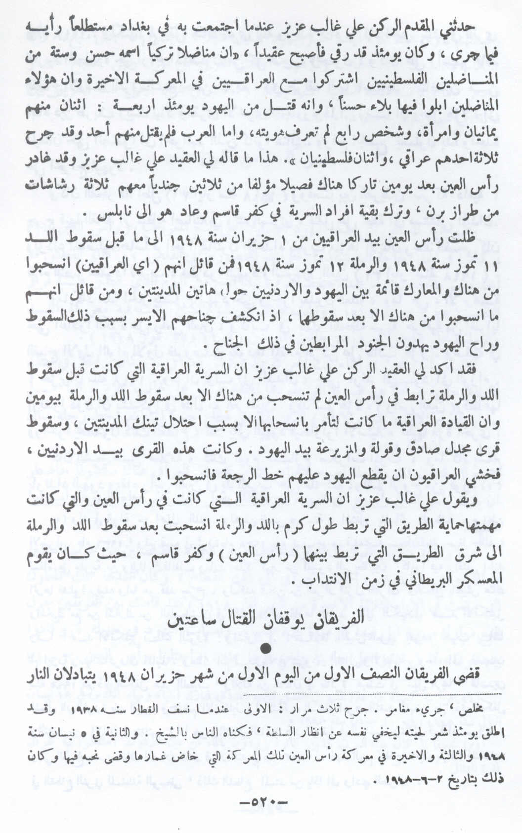 الفريقين يوقفان القتال ساعتين (أسفل الصفحة) - 1 حزيران 1948 -- النكبة الفلسطينية والفردوس المفقود للأستاذ عارف العارف |