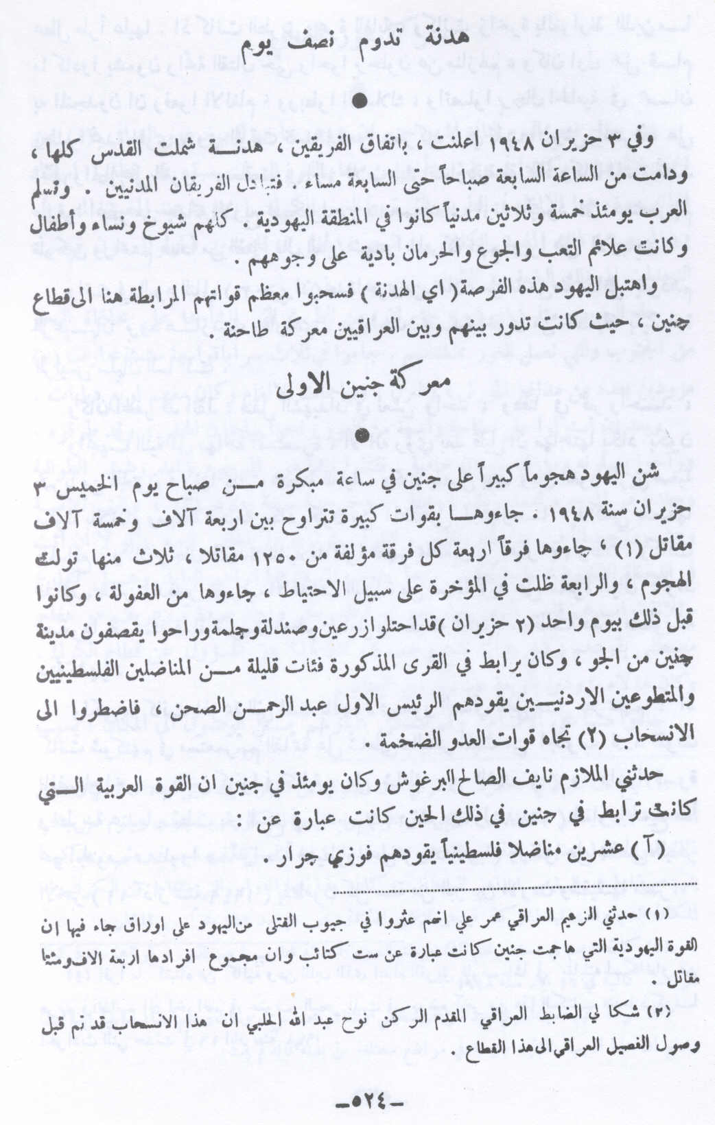 هدنة تدوم نصف يوم -معركة جنين الأولى- 3 حزيران 1948 -- النكبة الفلسطينية والفردوس المفقود للأستاذ عارف العارف