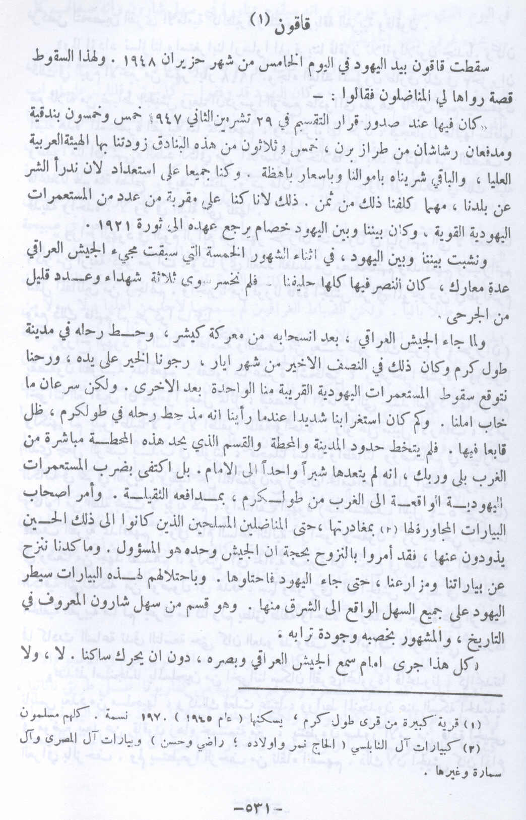سقوط قاقون - طولكرم - 5 حزيران 1948 -- النكبة الفلسطينية والفردوس المفقود للأستاذ عارف العارف |