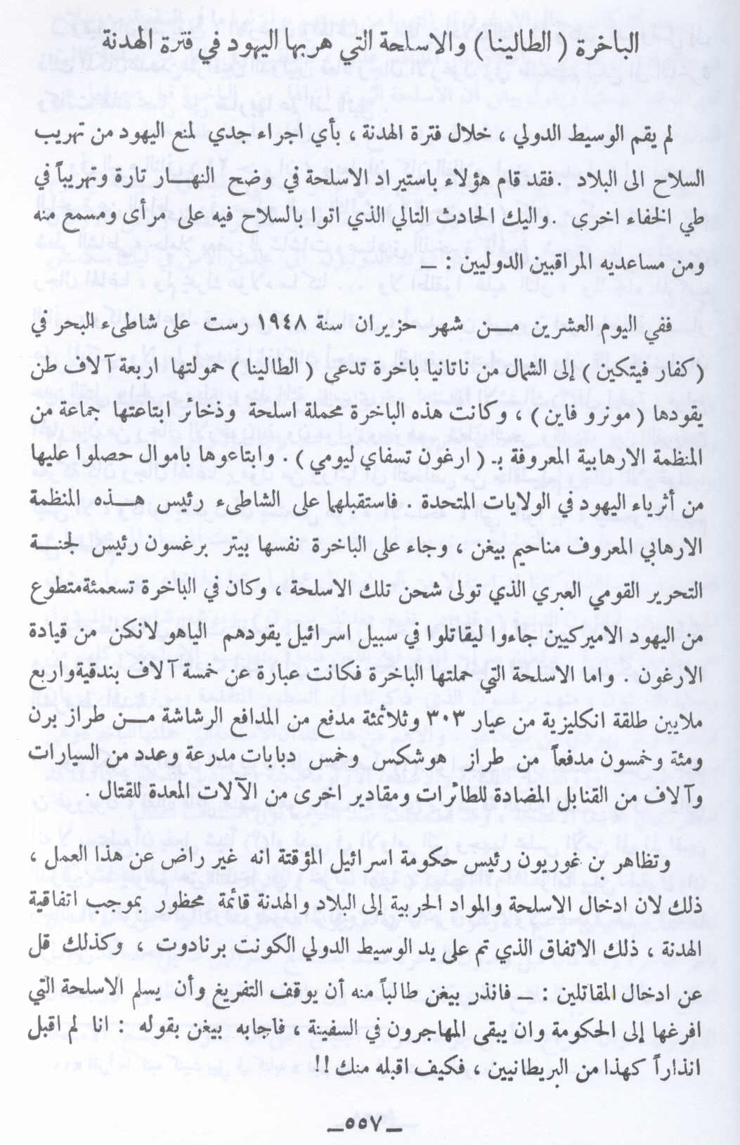 الباخرة (الطالينا) والأسلحة التي هربها اليهود في فترة الهدنة - 20 حزيران 1948 -- النكبة الفلسطينية والفردوس المفقود للأستاذ عارف العارف |
