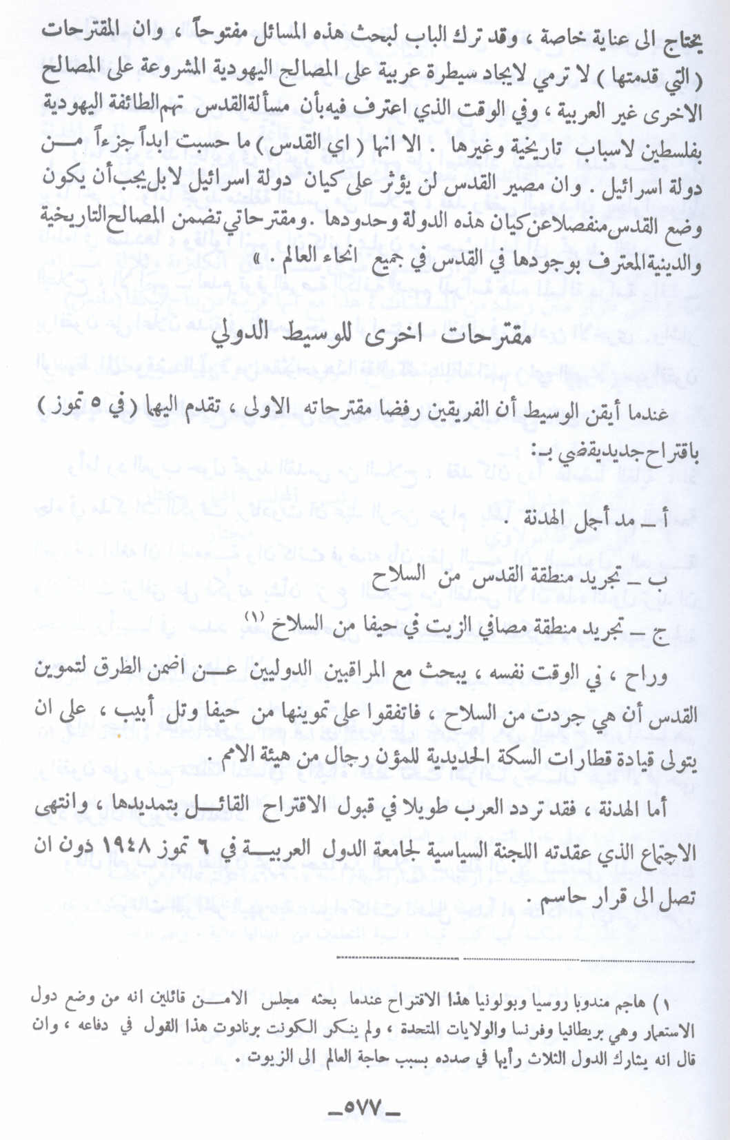 مقترحات اخرى للوسيط الدولي - 5 تموز 1948 -- النكبة الفلسطينية والفردوس المفقود للأستاذ عارف العارف |