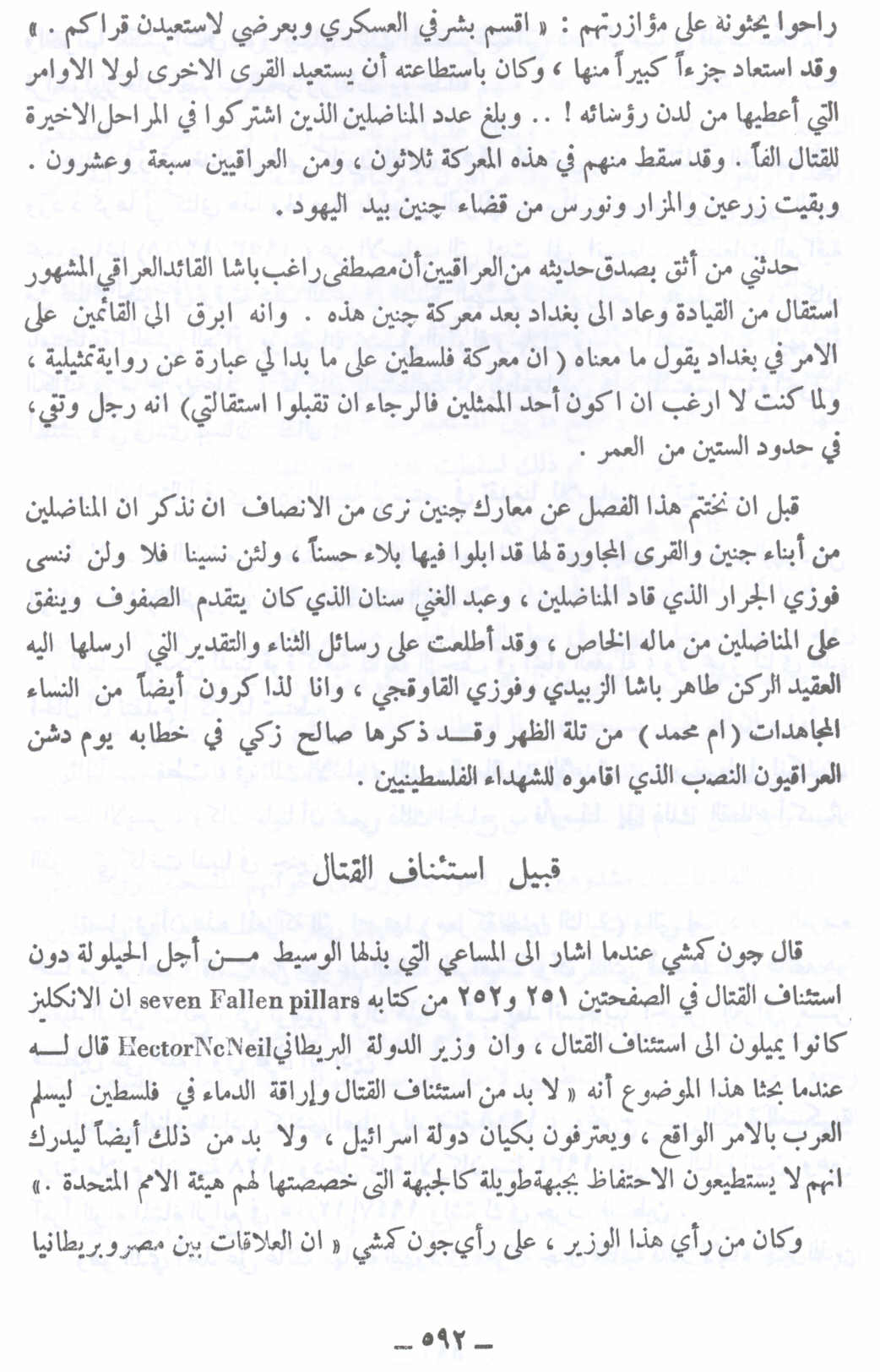 قبيل إستئناف القتال (أسفل الصفحة) -- النكبة الفلسطينية والفردوس المفقود للأستاذ عارف العارف |