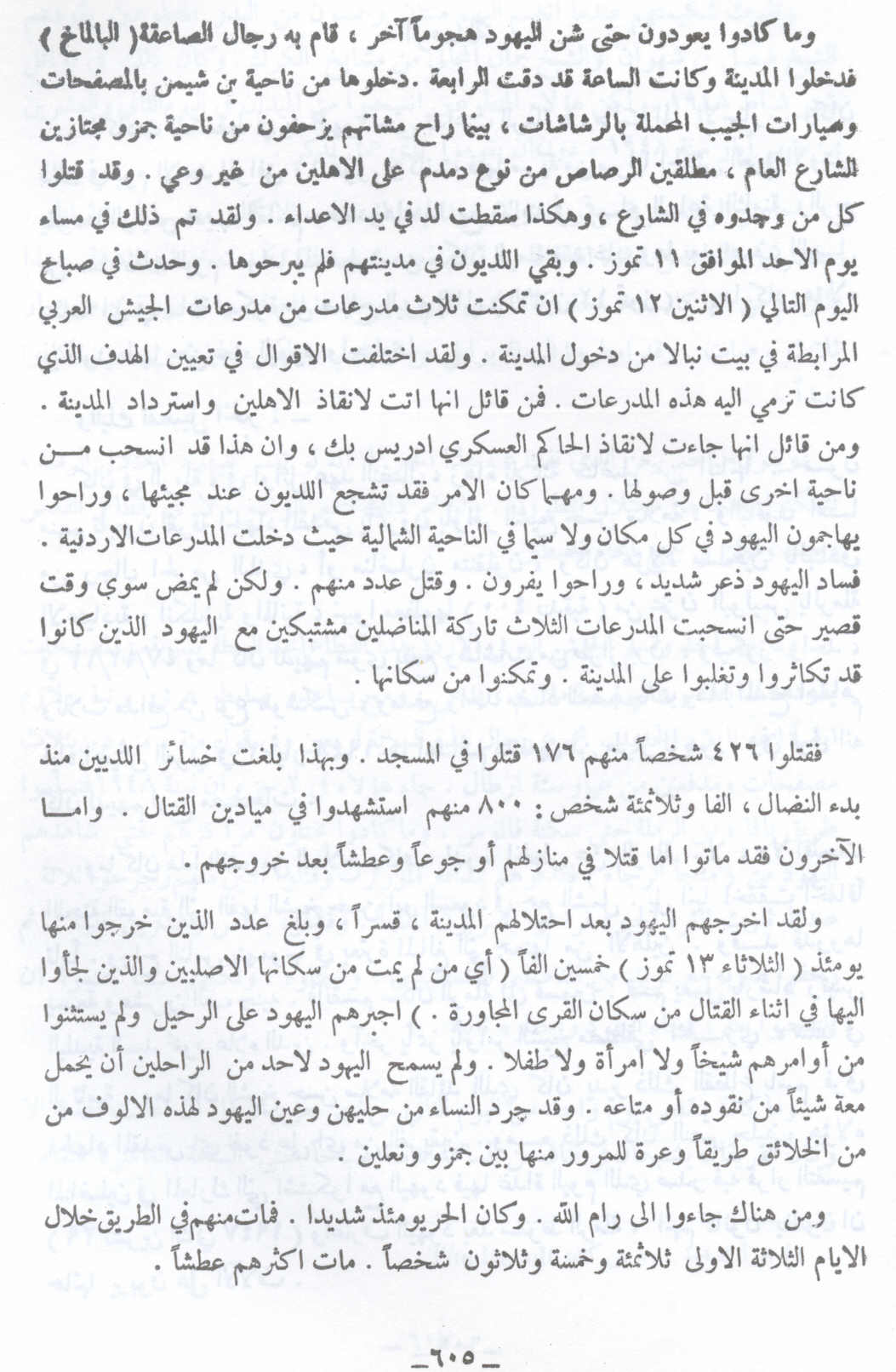 النكبة الفلسطينية والفردوس المفقود للأستاذ عارف العارف - المجلد الثالث - صفحة 605 |