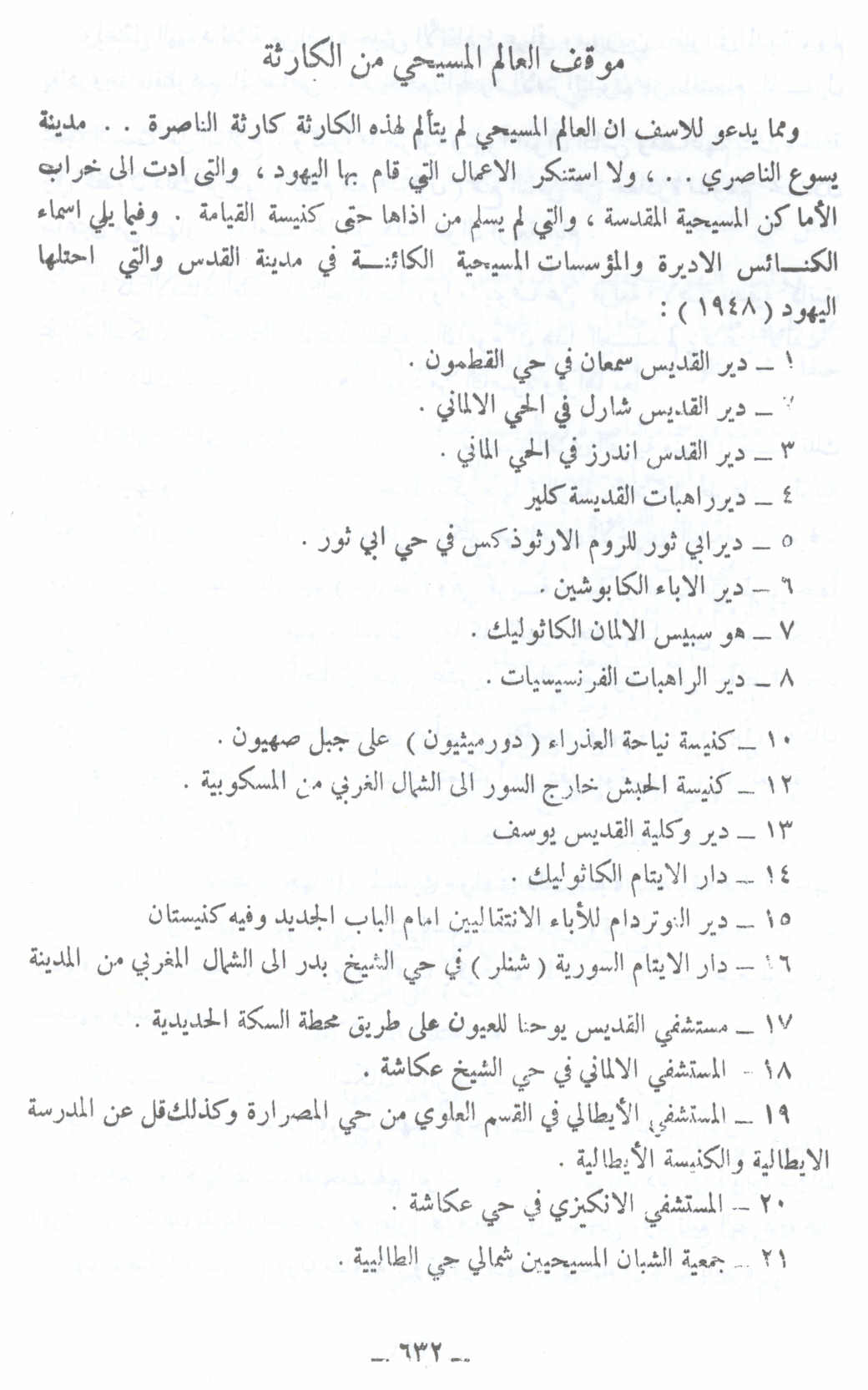 موقف العالم المسيحي من سقوط الناصرة -- النكبة الفلسطينية والفردوس المفقود للأستاذ عارف العارف |