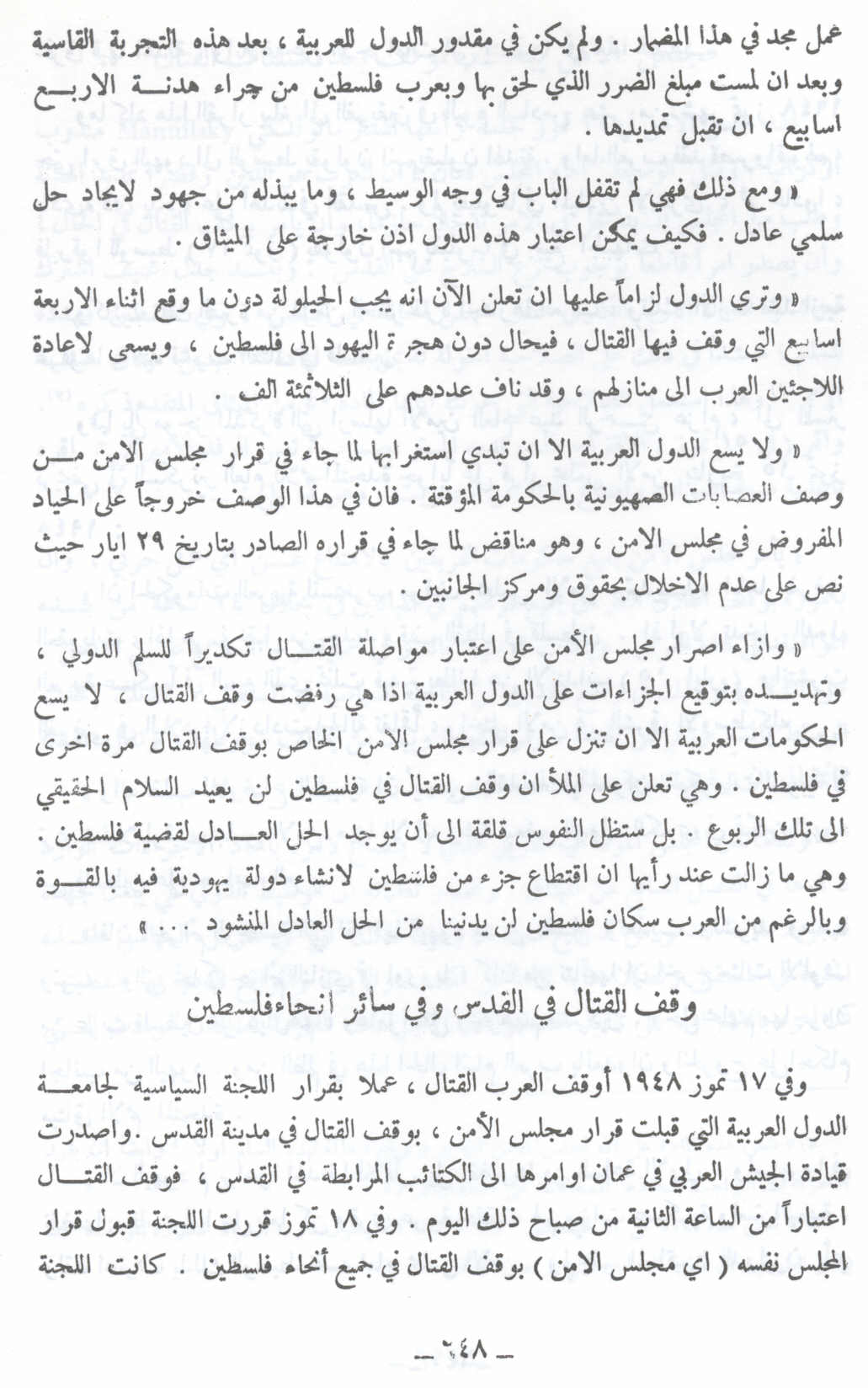 وقف القتال في القدس وسائر أنحاء فلسطين - 17 تموز 1948 -- النكبة الفلسطينية والفردوس المفقود للأستاذ عارف العارف |