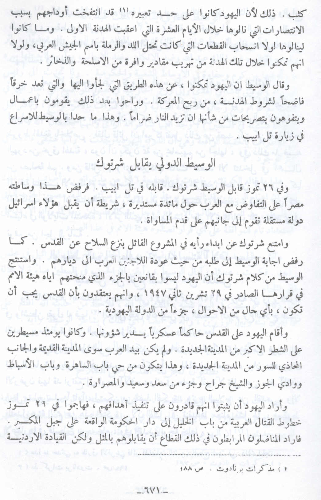 الوسيط الدولي يقابل شرتوك - 26 تموز 1948 -- النكبة الفلسطينية والفردوس المفقود للأستاذ عارف العارف |