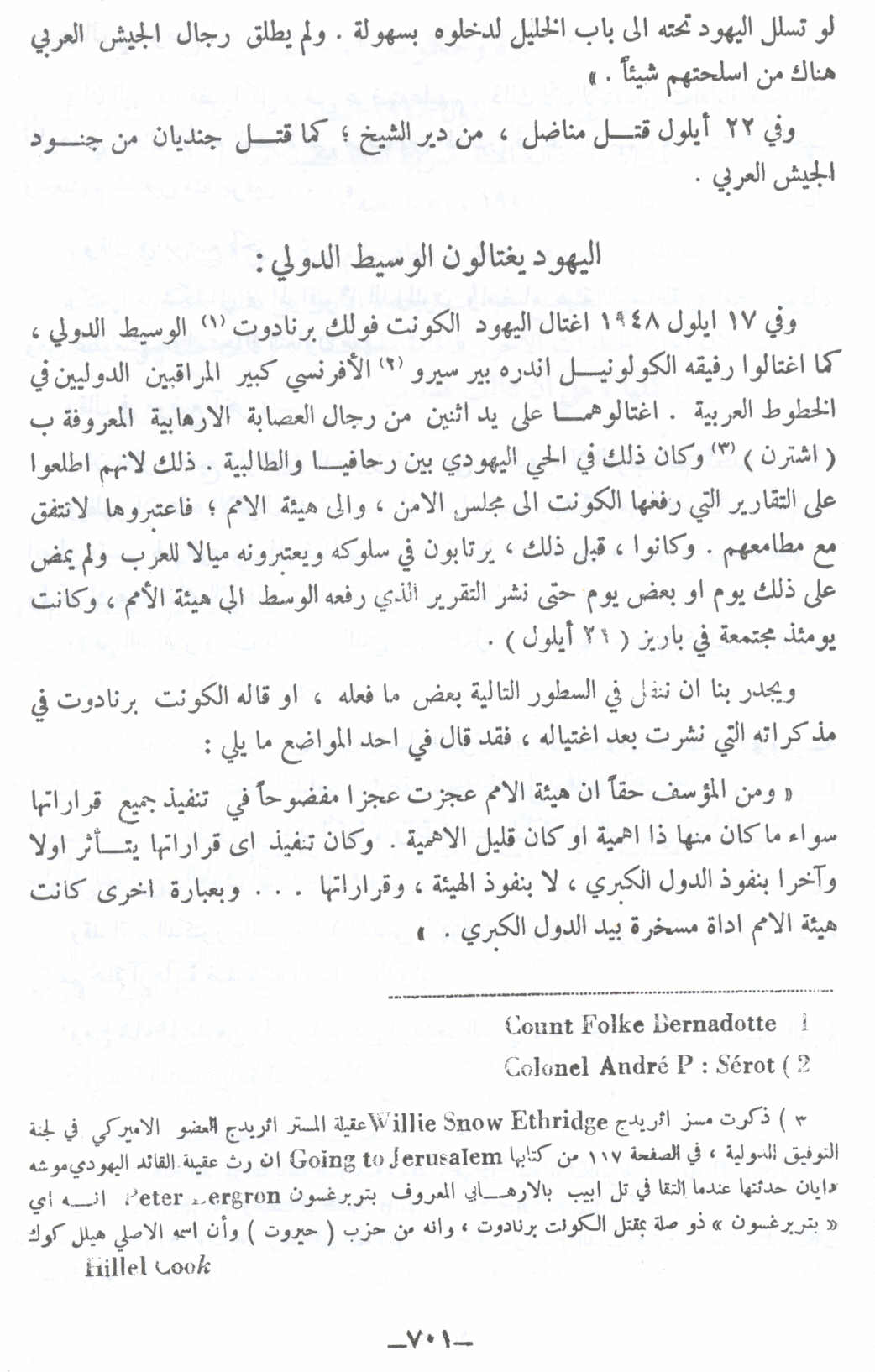 إغتيال الوسيط الدولي الكونت فولك برنادوت - 17 أيلول 1948 -- النكبة الفلسطينية والفردوس المفقود للأستاذ عارف العارف |