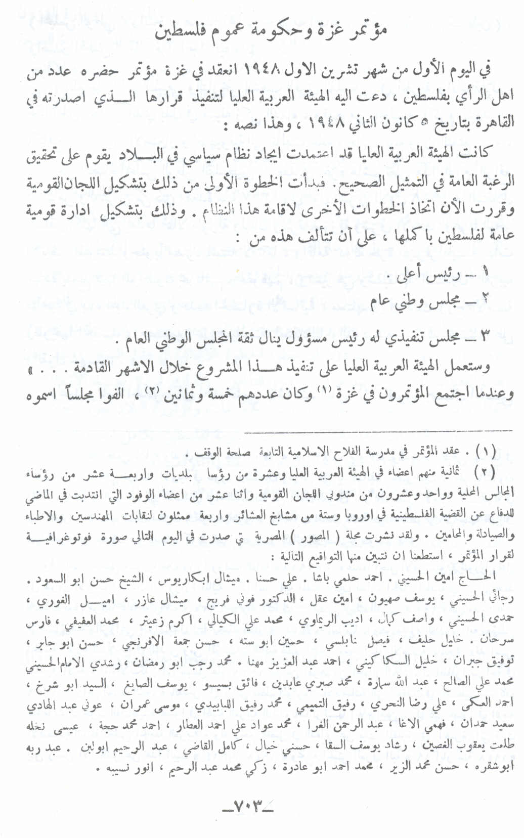 مؤتمر غزة وحكومة عموم فلسطين - 1 تشرين أول 1948 -- النكبة الفلسطينية والفردوس المفقود للأستاذ عارف العارف |