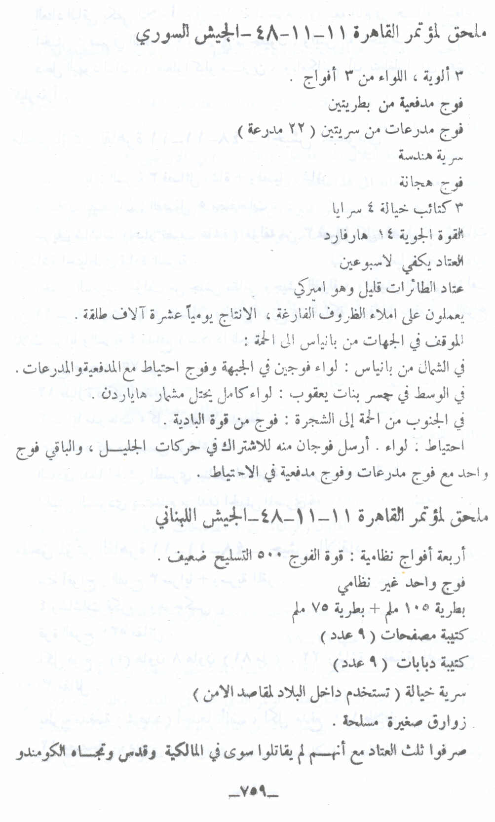 ملحق مؤتمر القاهرة 11 تشرين ثاني 1948 - الجيش السوري -- النكبة الفلسطينية والفردوس المفقود للأستاذ عارف العارف |