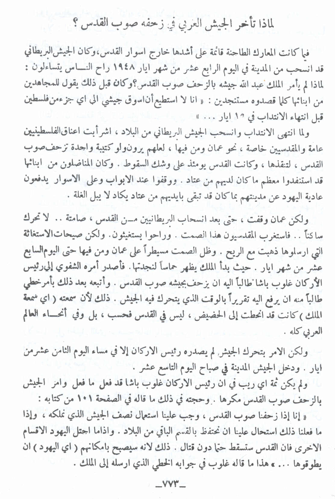 لماذا تأخر الجيش العربي الأردني بالتحرك صوب للقدس؟ -- النكبة الفلسطينية والفردوس المفقود للأستاذ عارف العارف |