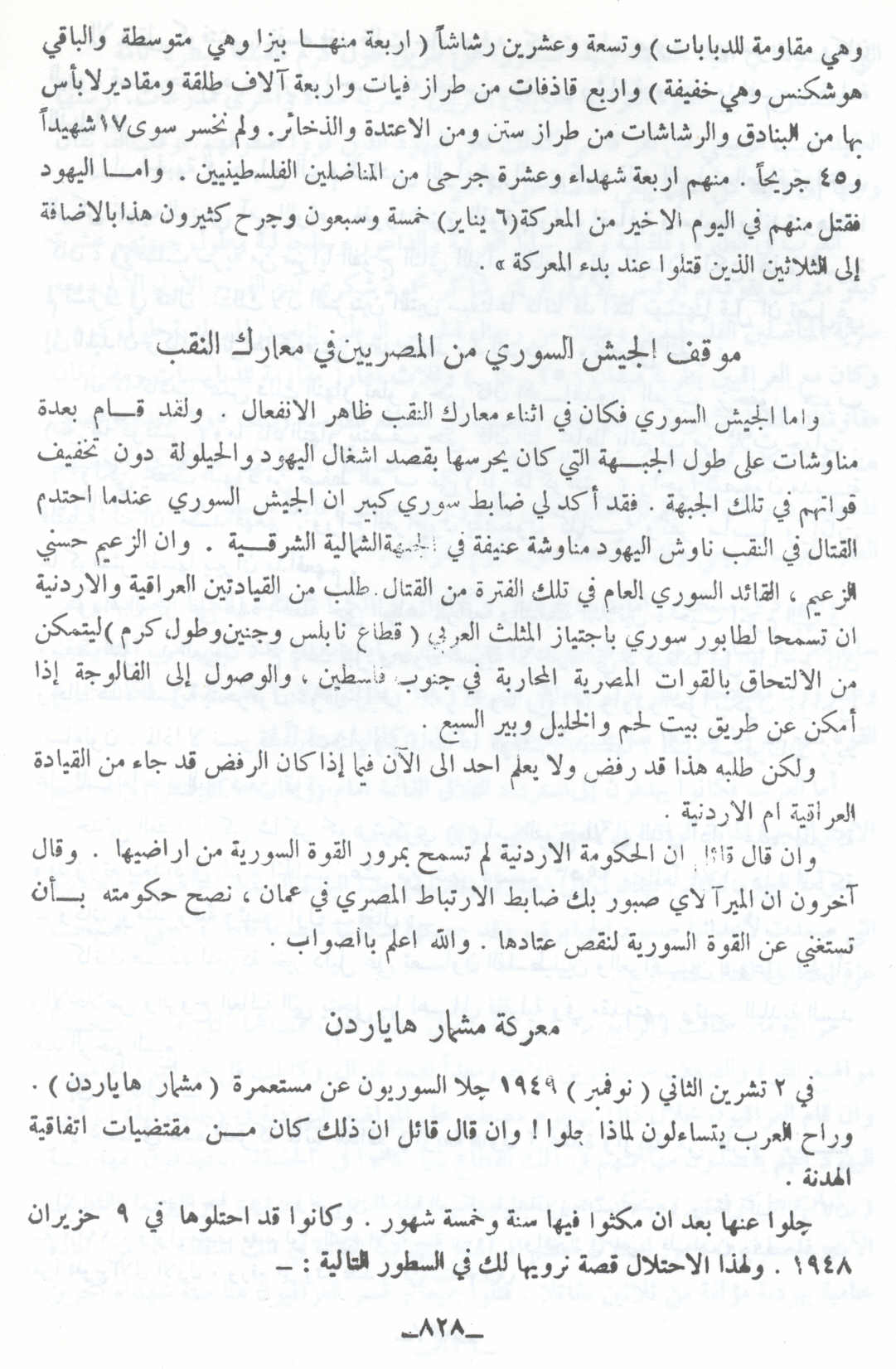 موقف الجيش السوري من المصريين في معارك النقب -معركة مشمار هاياردن- النكبة الفلسطينية والفردوس المفقود للأستاذ عارف العارف |