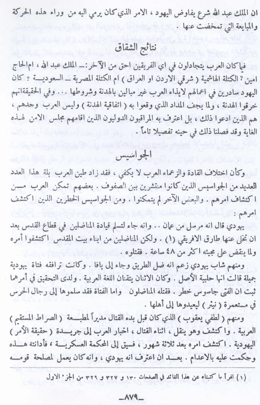 نتائج الشقاق العربي وإنقسماته -الجواسيس- النكبة الفلسطينية والفردوس المفقود للأستاذ عارف العارف |
