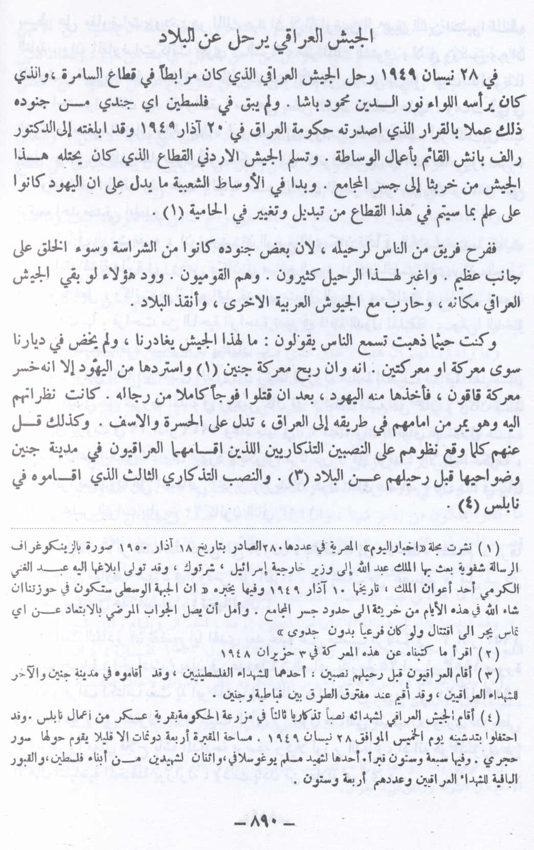 الجيش العراقي يرحل عن البلاد - 28 نيسان 1949 -- النكبة الفلسطينية والفردوس المفقود للأستاذ عارف العارف |